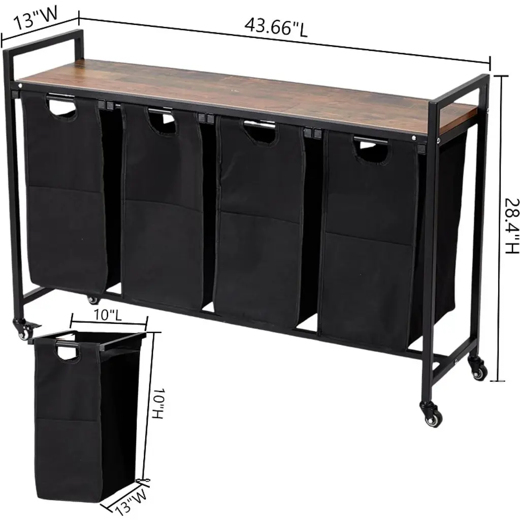 Revolutionize Laundry Day with Smart Organization!Tired of chaotic laundry piles? Our modular hamper replaces 3+ storage pieces with one intelligent system designed by professional organizers. The ultimate solution for busy households, compact spaces, and commercial facilities. ✅ KEY ADVANTAGES✔️ Color-Coded Efficiency: Prevent dye transfers with dedicated compartments✔️ Ergonomic Transport: Roll or carry bags without straining your back✔️ Space Maximization: Vertical design utilizes unused vertical space✔️ Commercial Durability: Withstands 10+ washes weekly✔️ Quick Maintenance: Machine-washable bags (cold water recommended) 📐 DIMENSIONS & CAPACITYFeature SpecificationOverall Size 24"W × 16"D × 38"HShelf Dimensions 24"W × 16"D (44 lb capacity)Bag Capacity 11.5 gal each (30 lbs per bag)Weight Capacity 150+ lbs totalPremium Materials: 1.2mm reinforced iron frameScratch-proof melamine particleboard600D waterproof Oxford fabricNon-marking rubber casters🌟 INTELLIGENT FEATURESBag System: Quick-release buckle attachmentsVentilated side panelsColor-coded tag holdersReinforced stress pointsMobility & Safety: 360° silent-roll castersWheel lock mechanismAnti-tip crossbarAdjustable leveling feetMulti-Room Functionality: Bathroom: Towel/toiletry organizerBedroom: Nightstand + clothes sorterLaundry Room: Detergent stationDorm: All-in-1 storage solution🛠️ SIMPLE SETUPUnfold pre-assembled frameSnap chosen bags onto tracksInstall shelf (tool-free)Attach caster wheelsOrganize and enjoy!📦 COMPLETE PACKAGE INCLUDES: Main frame with storage shelf2/3/4 removable laundry bags (based on configuration)4 locking caster wheelsAdjustable leveling feetAssembly guide
