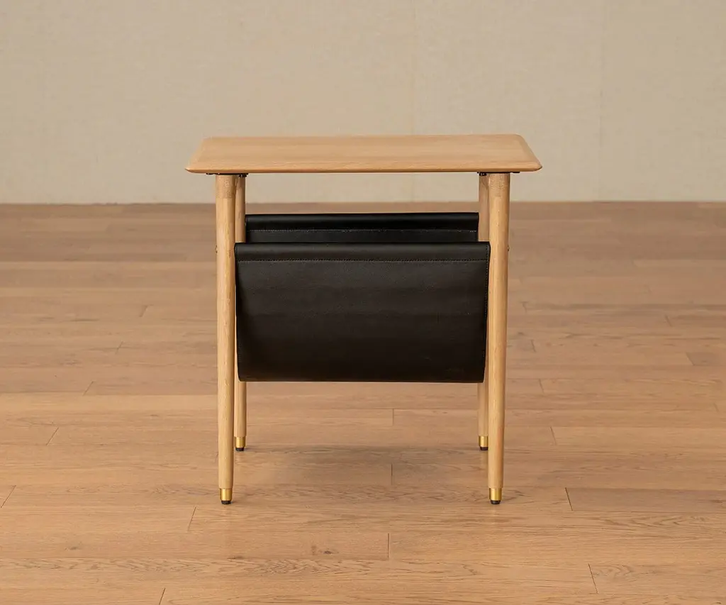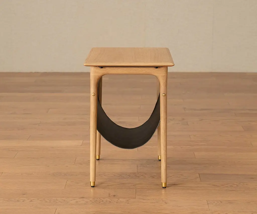 A timeless mid-century profile gives the Hendrick End Table an airy, elegant appearance that will work seamlessly with nearly any decor style. It's crafted of solid white oak for incredible durability, while sleek tapered legs finished with brass caps add a classic touch.