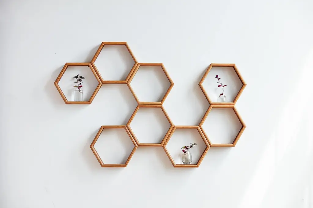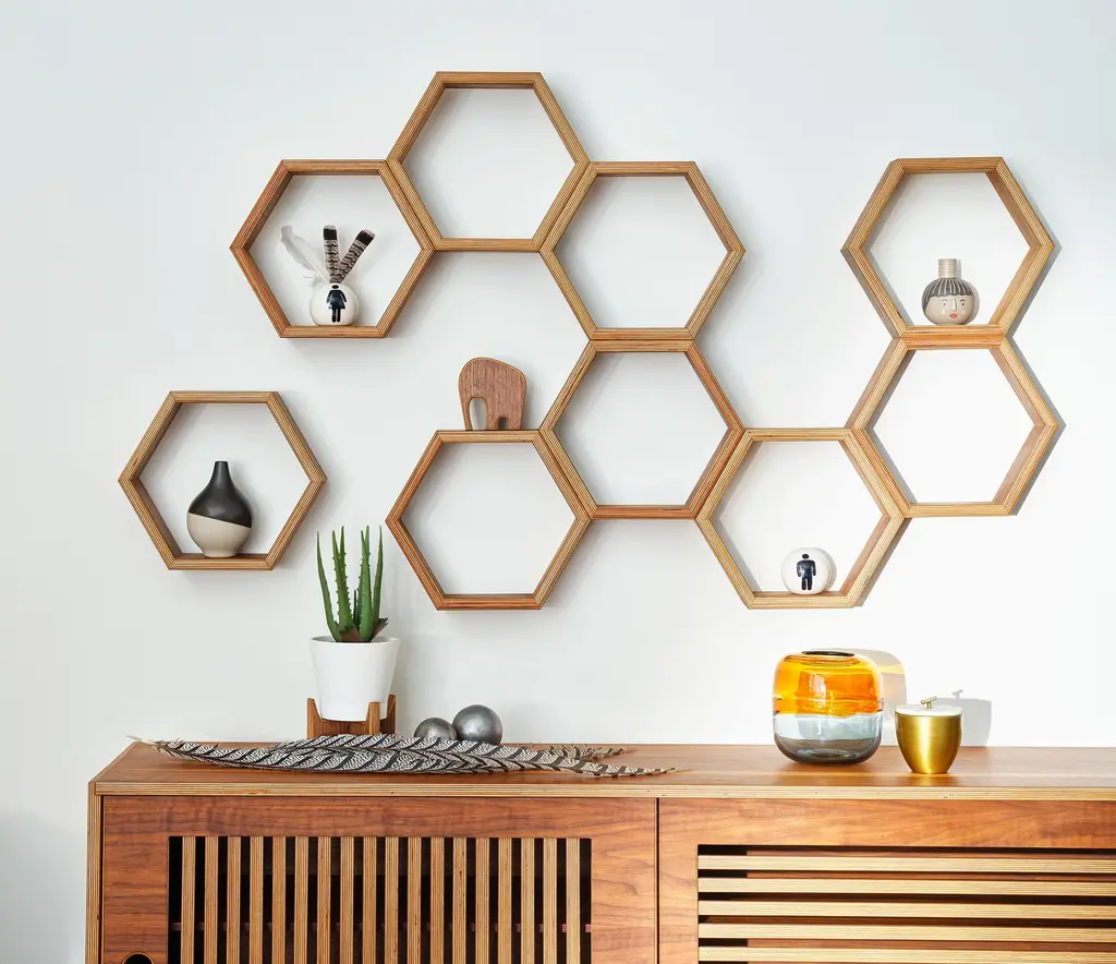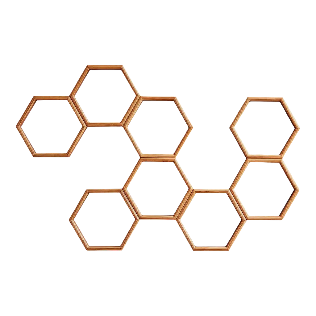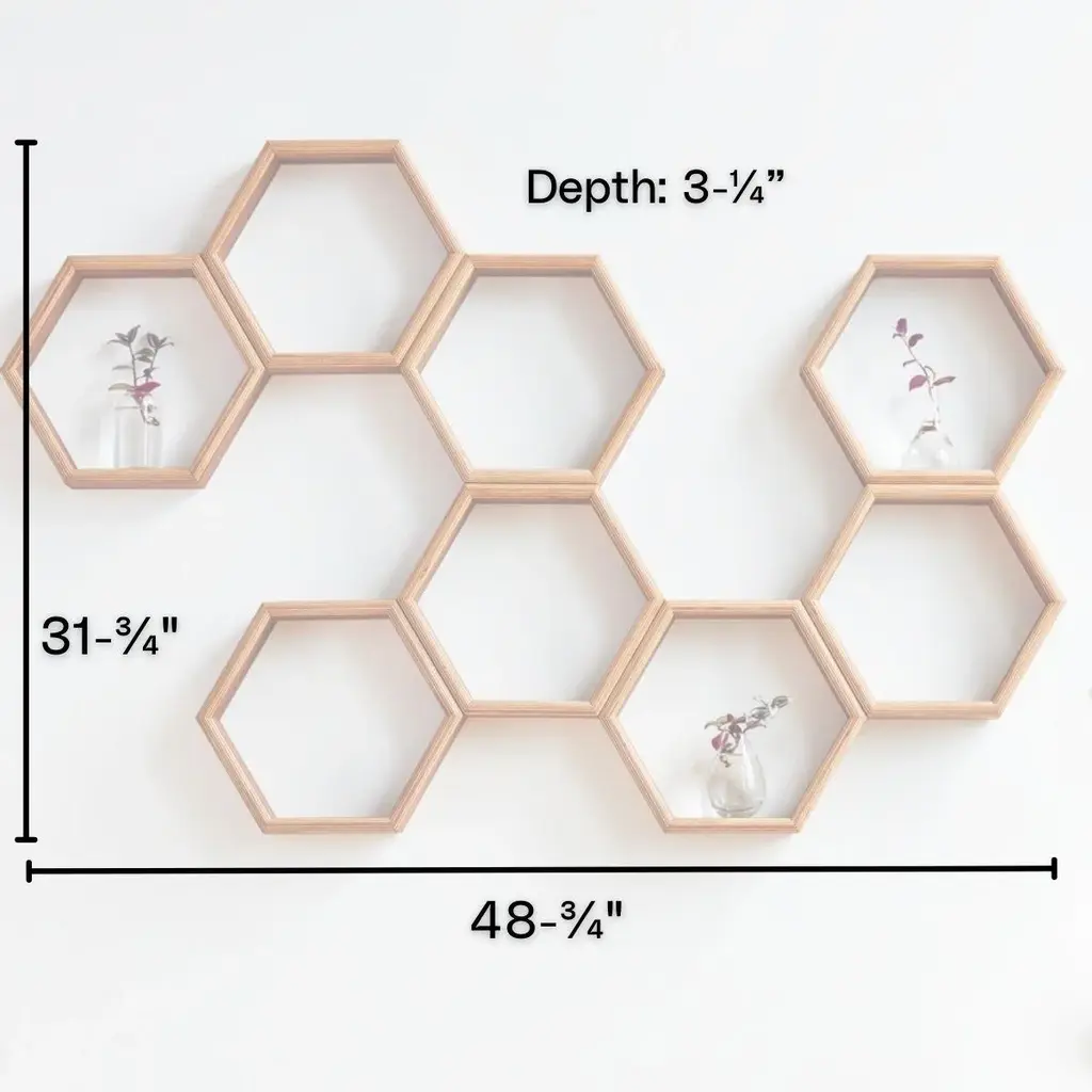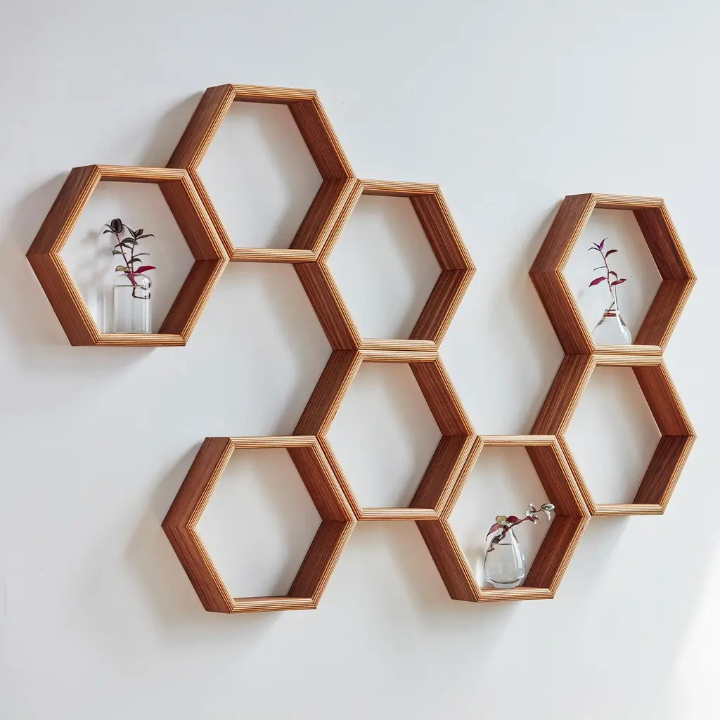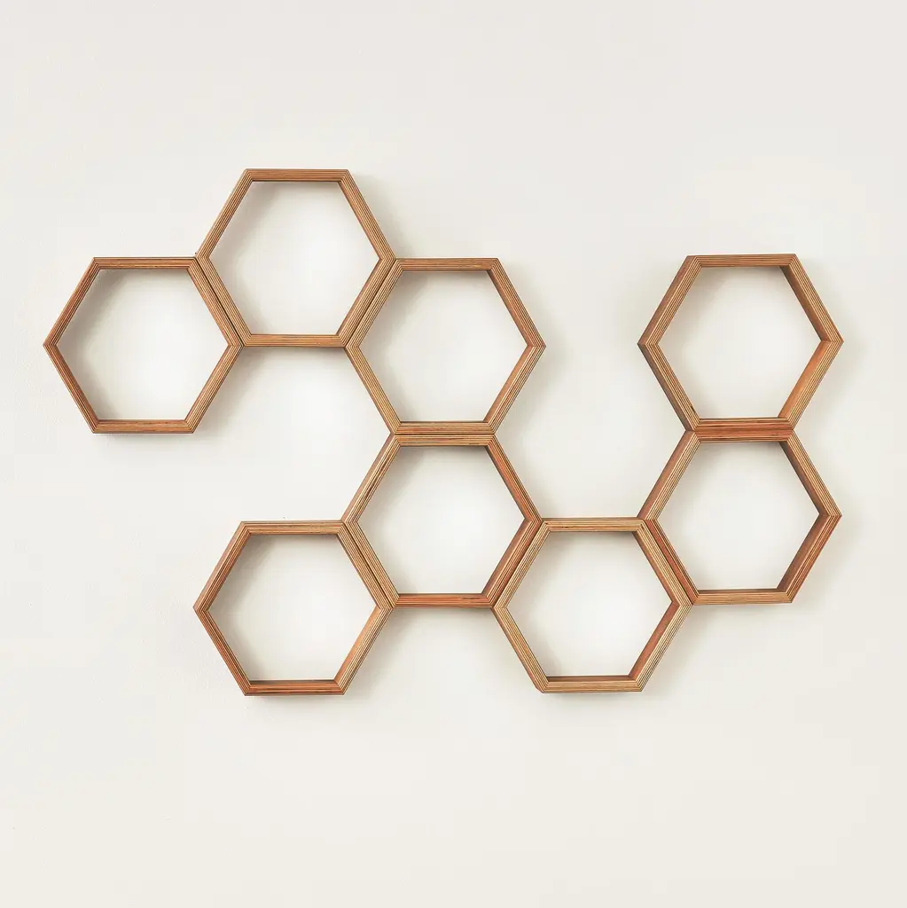 Hexagon Honeycomb Wall Shelf - Set Of 8 - Walnut