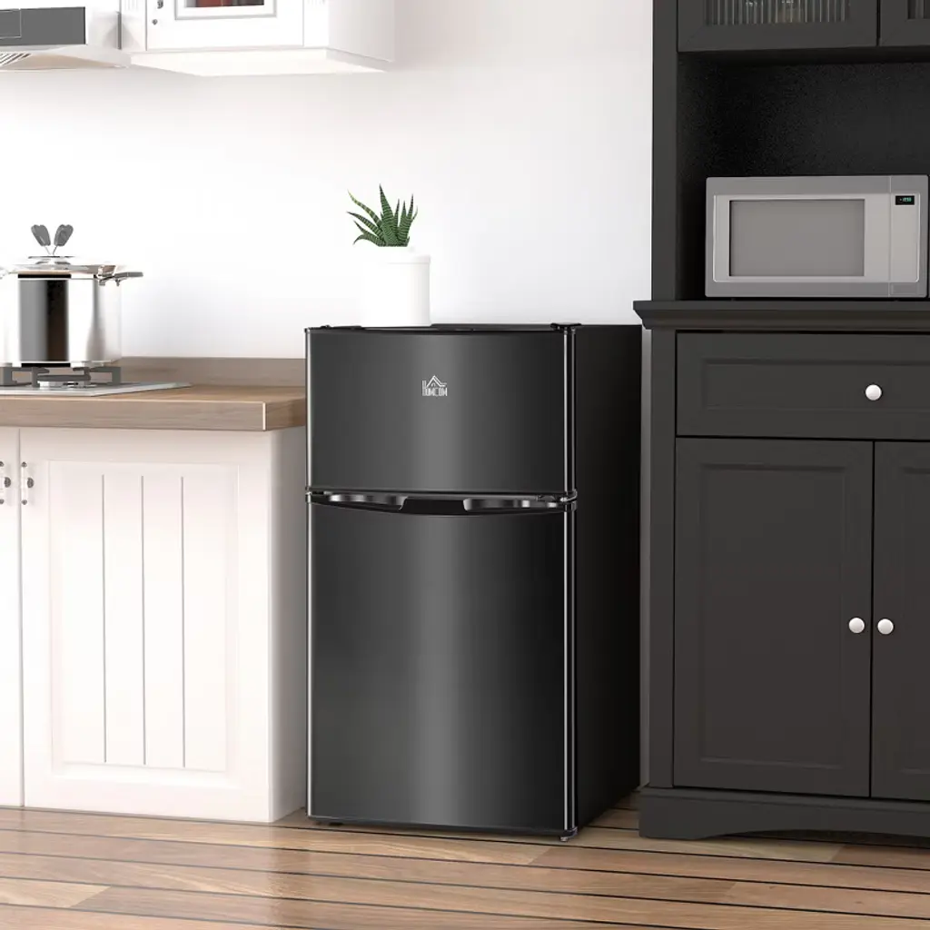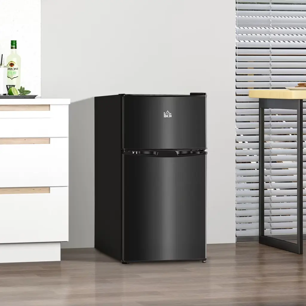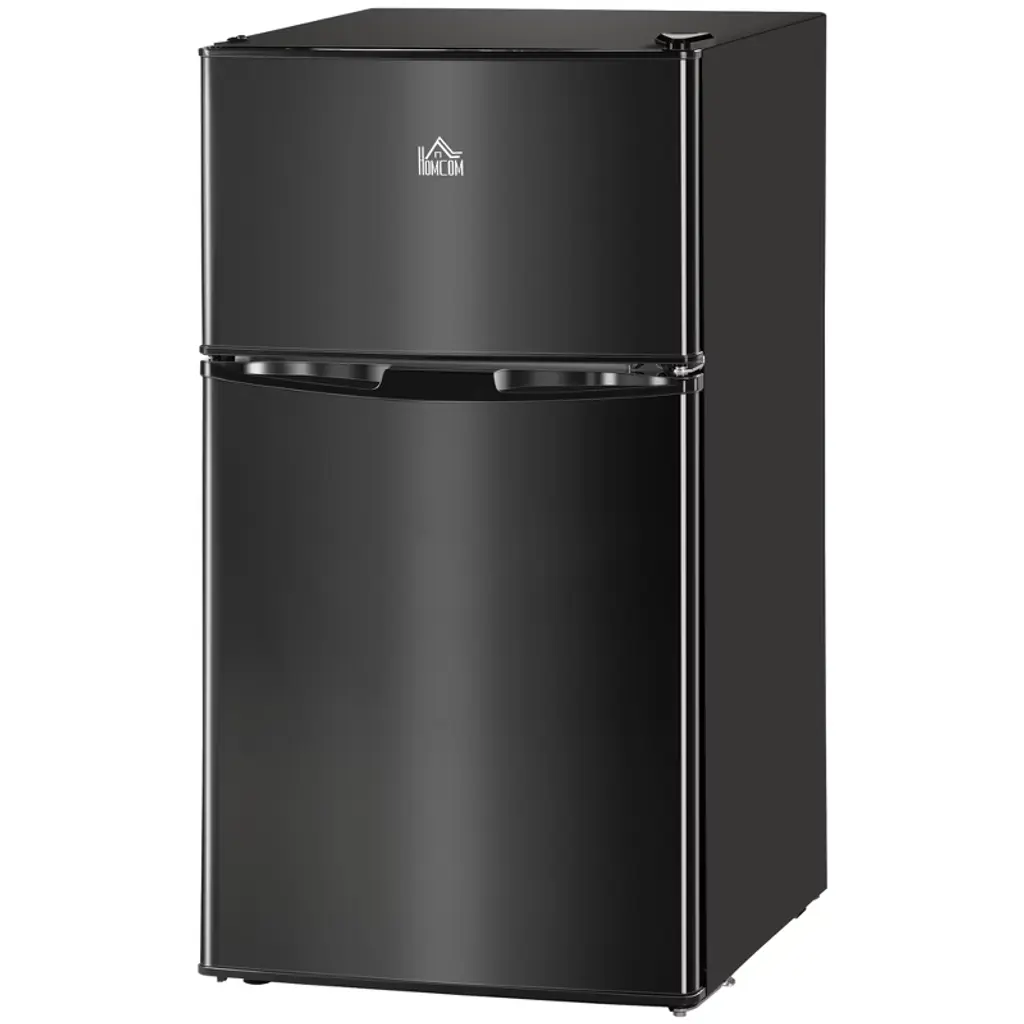 Homcom Double Door Mini Fridge With Freezer, 3.2 Cu.ft Compact Refrigerator With Adjustable Shelf, Adjustable Thermostat And Reversible Door, Black