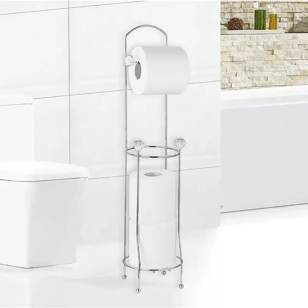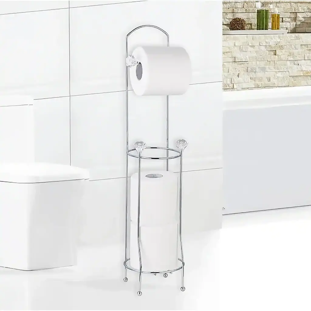 Our Toilet Paper Holder Stand features a stable base that helps prevent it from scratching your floor or falling over. SIZE: This toilet paper stand holder measures 20" x 6" x 6". This freestanding toilet paper holder is space saving and movable, the toilet paper stand can be moved to a reachable place next to you. Our Toilet Paper Holder Stand features a stable base that helps prevent it from scratching your floor or falling over. The classic appearance, with a durable rust-resistant finish improves the style of the entire toilet paper holder.