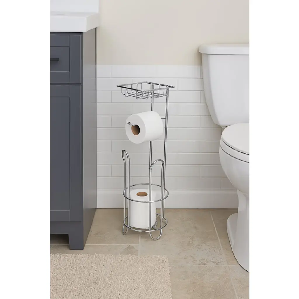 Home Mart Goods Silver Toilet Paper Holder Stand With Phone/wipes Shelf - 20" Tall