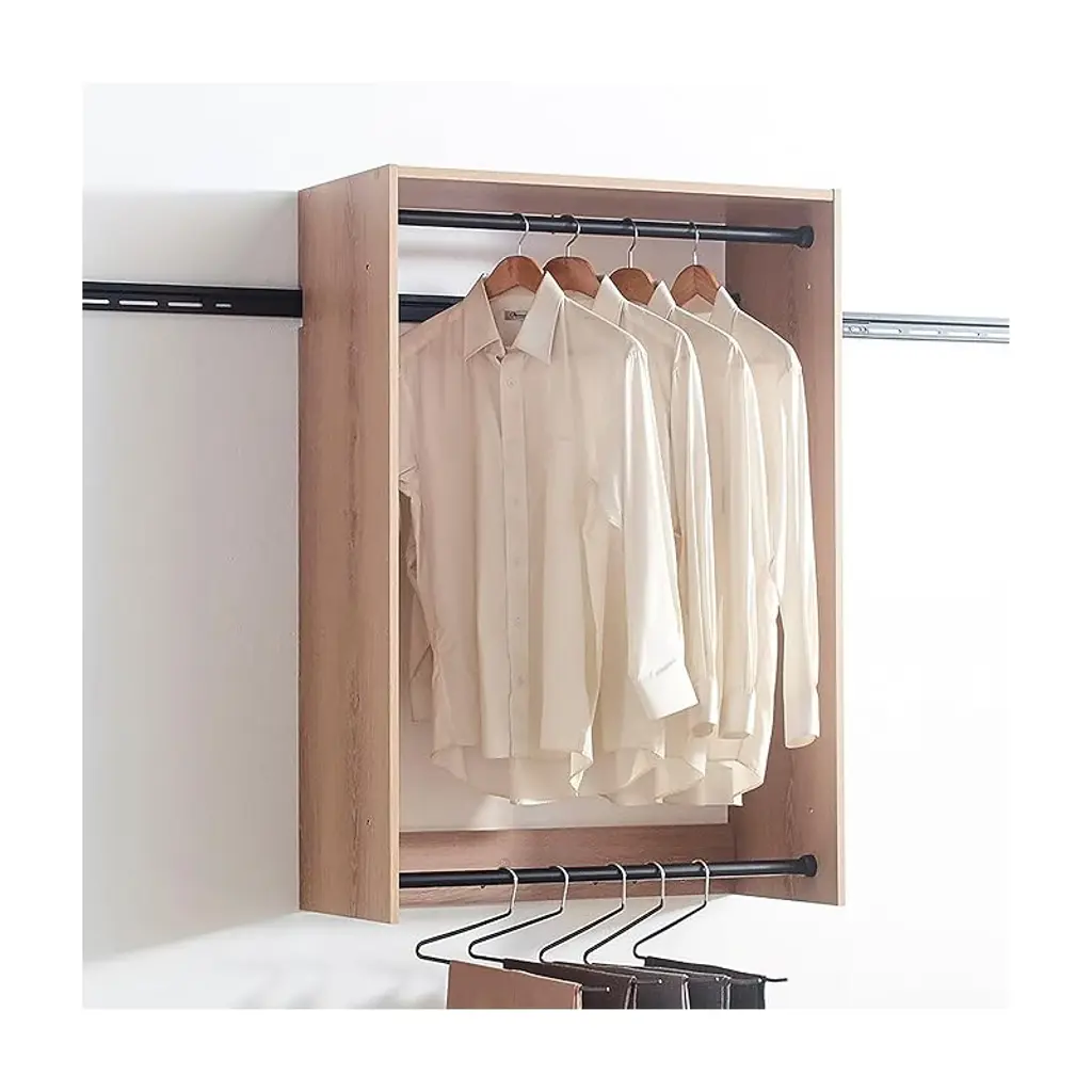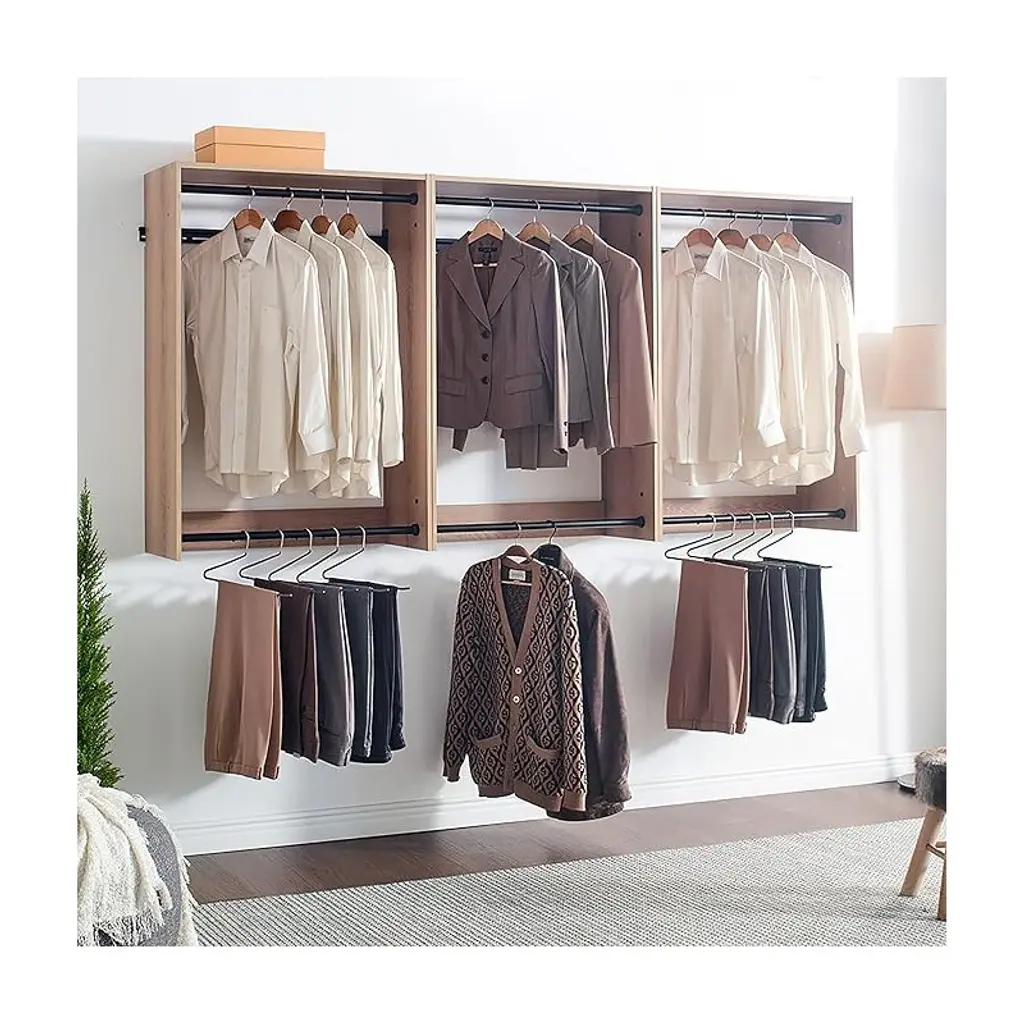 Homestock Devi Series Oak Modular Closet System Double Hanging Rods 0 Shelf