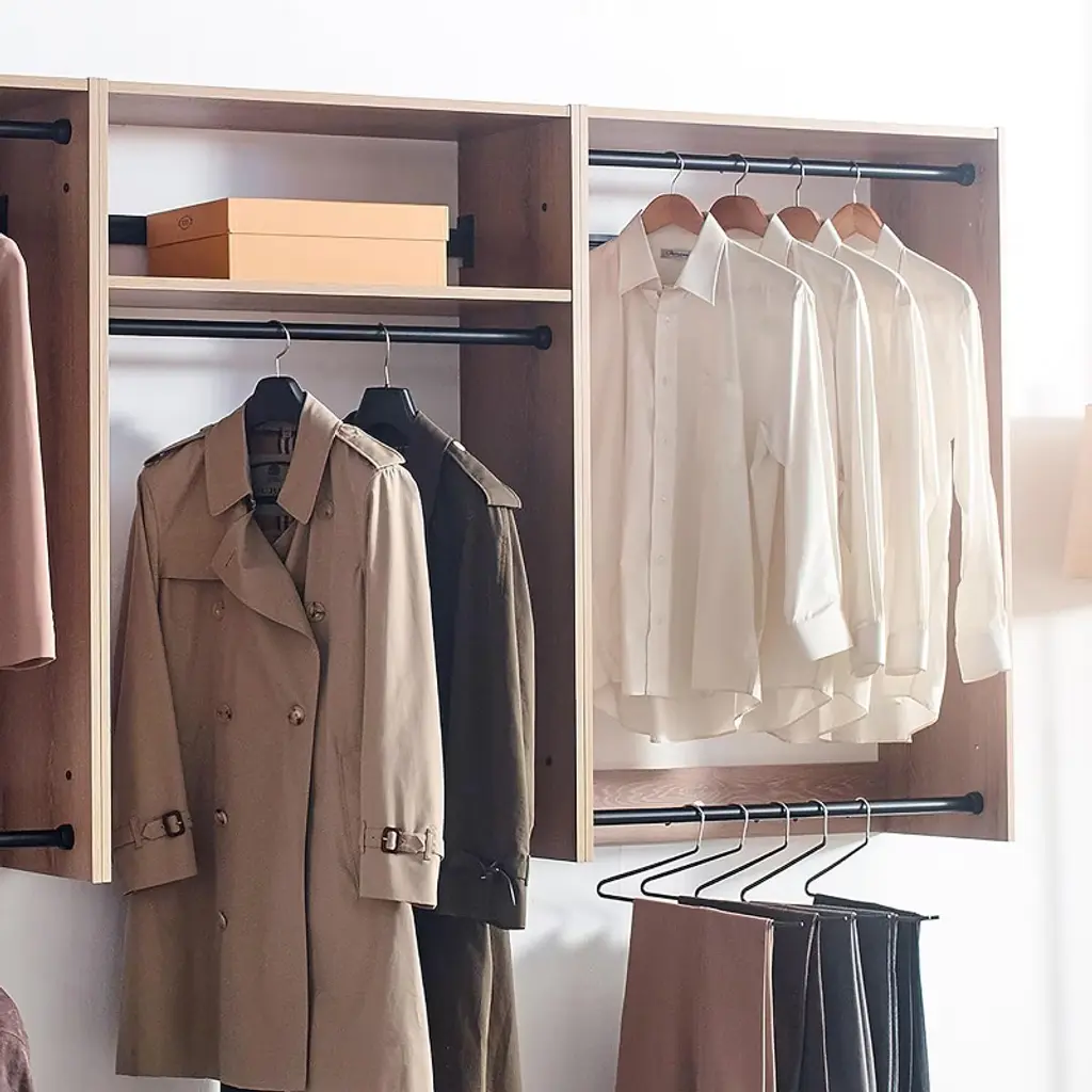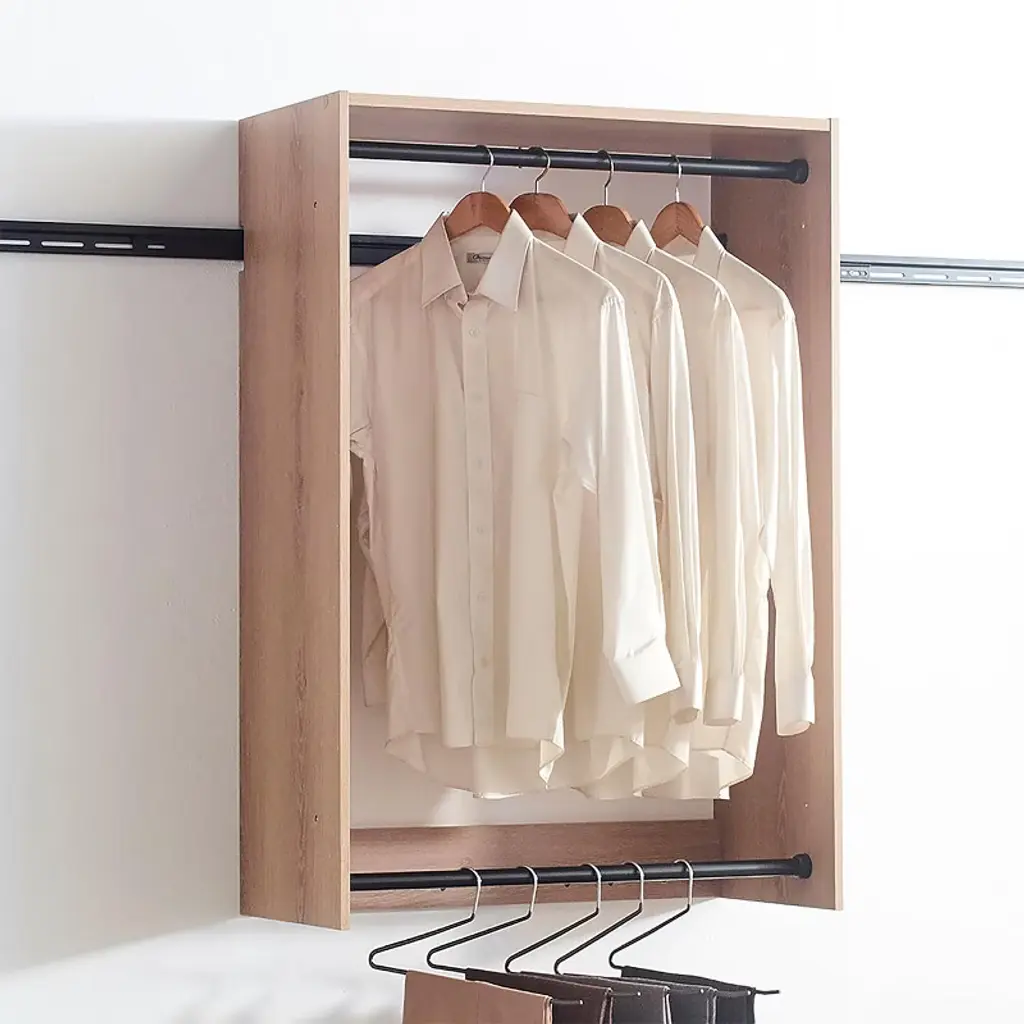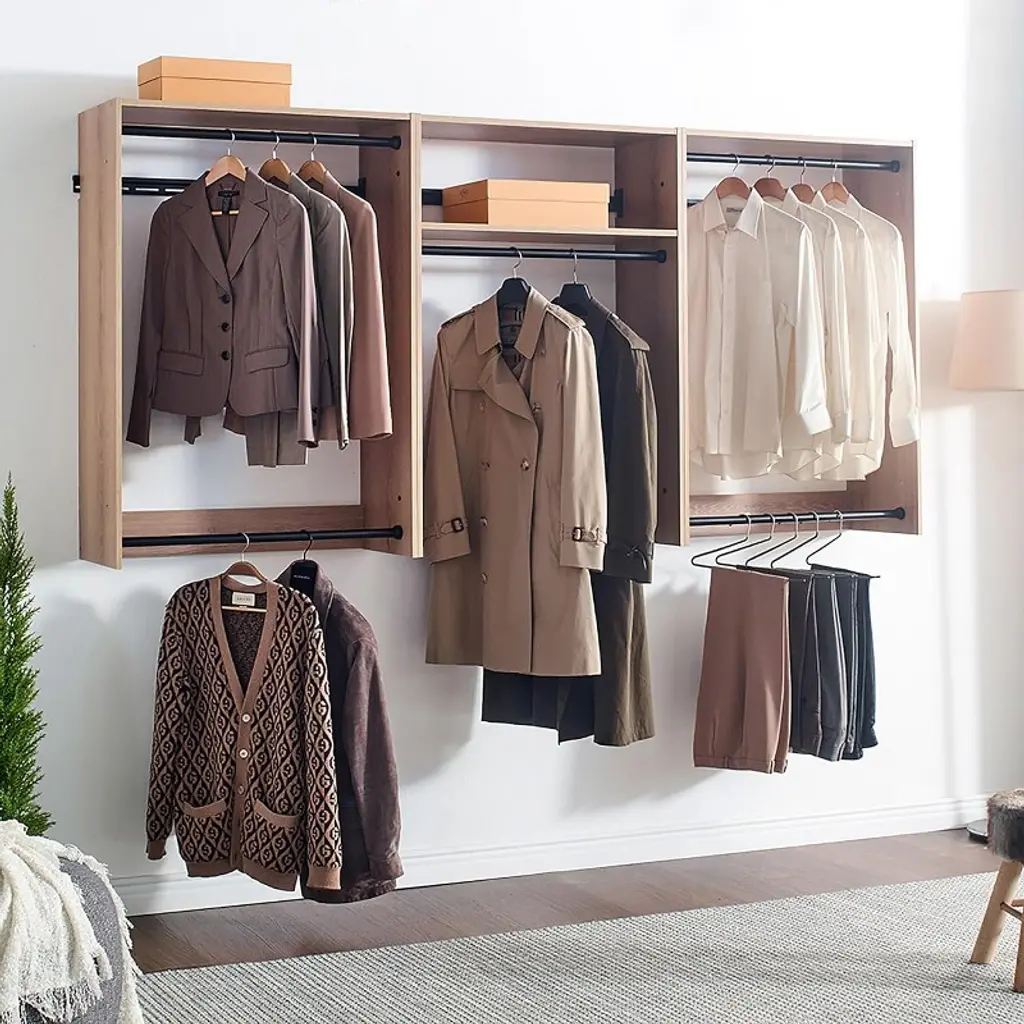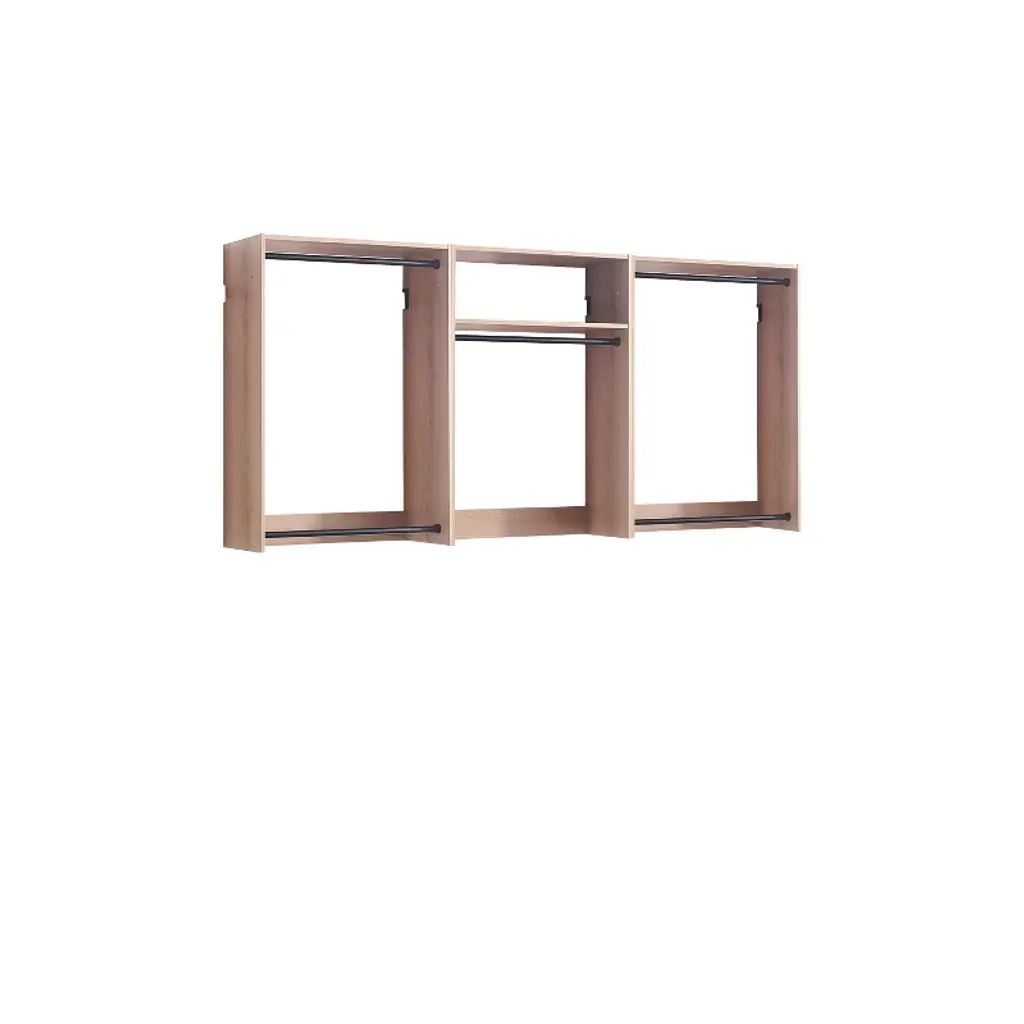 Homestock Devi Series Oak Modular Closet System Double Hanging Rods 1 Shelf