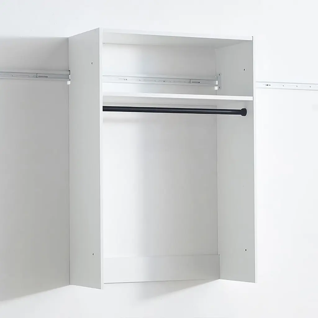 The Devi Walk-In Closet System provides a wall-hanging, modular solution designed for efficient space utilization. With a streamlined design and just four SKUs, customers can easily create custom configurations, simplifying organization. The 13.8?D depth is perfect for smaller spaces, maximizing storage without sacrificing accessibility. This versatile system includes a separate drawer unit that can be incorporated anywhere within the closet or used independently. Built for lasting durability, Devi features a robust metal bracket system for superior support and stability. Quick and intuitive assembly ensures a hassle-free installation process. The water, heat, and scratch-resistant surface maintains a sleek, modern aesthetic while providing lasting protection.