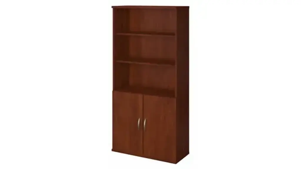 Store reading materials or display memorabilia with the Series C Elite 36" W 5 Shelf Bookcase with Doors by Bush Business Furniture on one fixed and three adjustable shelves. Includes Half Height Door Kits for a concealed storage option. Meets ANSI/BIFMA standards for safety and performance. American made with U.S. and imported parts. Overall Dimensions: 35.71" W x 15.35" D x 72.80" H. Ships ready for easy assembly.