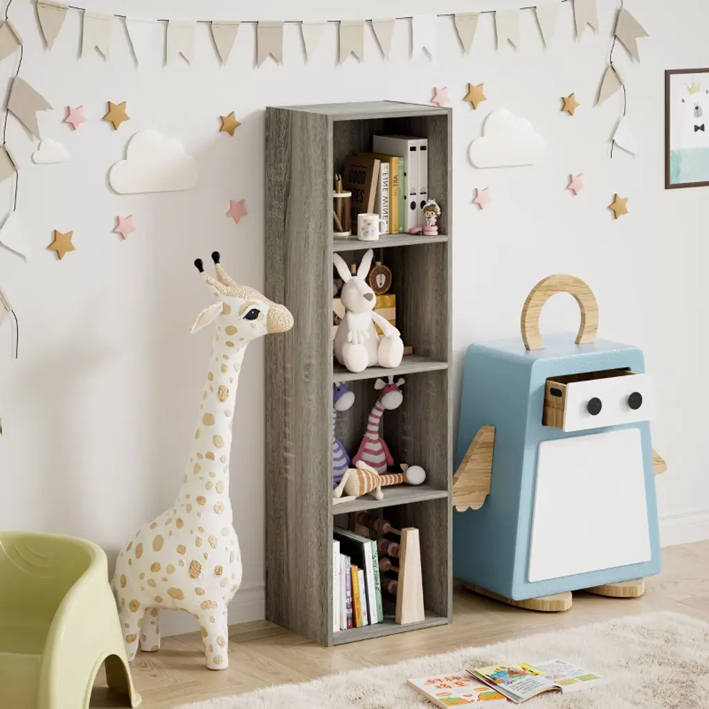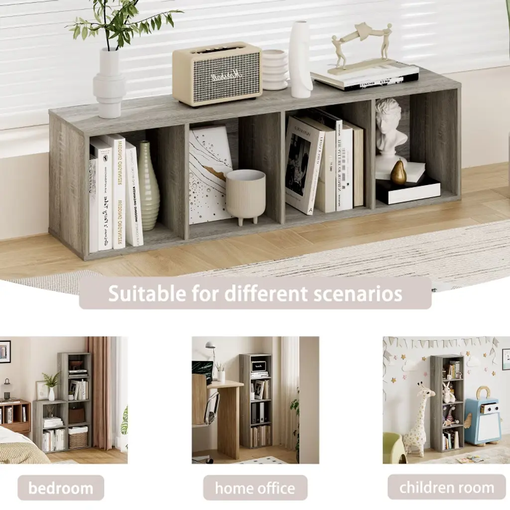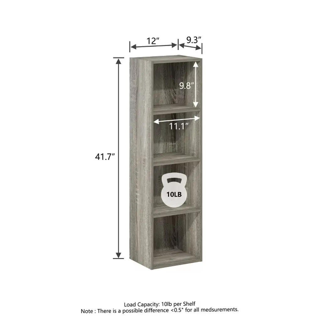 Homlux 4-tier Bookcase With 4 Open Cubbies Storage Shelf Display Organizer, Gray
