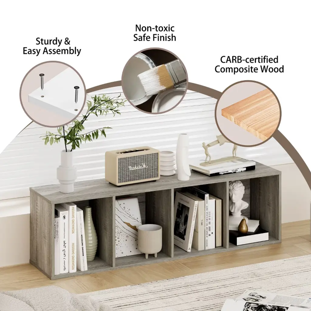 HOMLUX 4-tier cube bookcase combines style and function for any room. Clean lines and open shelves hold books, decor, or essentials with ease. Crafted from durable CARB-compliant wood, each shelf supports up to 10 lbs. Available in multiple colors to fit your home.