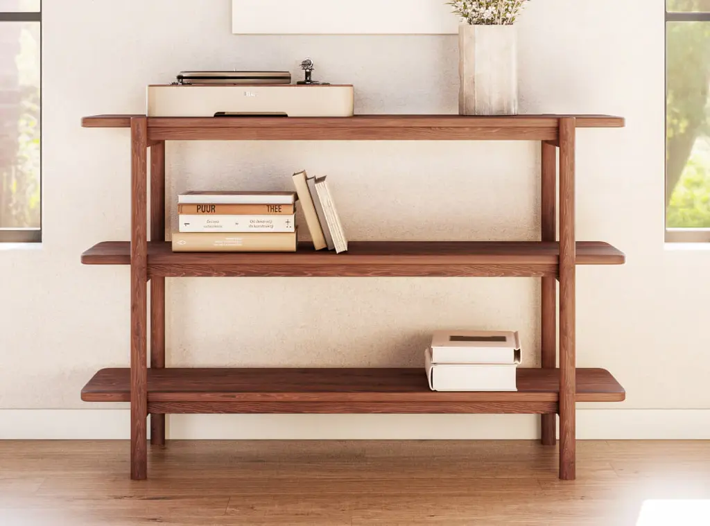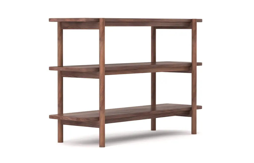 Iris Shelf's open design lets your favorite possessions shine. Its narrow profile fits neatly into any nook or against a wall—you pick! Lots of styling potential here: vases and plants up top, books and the rest down below?Crafted in your choice of beautiful, 100% solid hard White Maple or American Walnut.