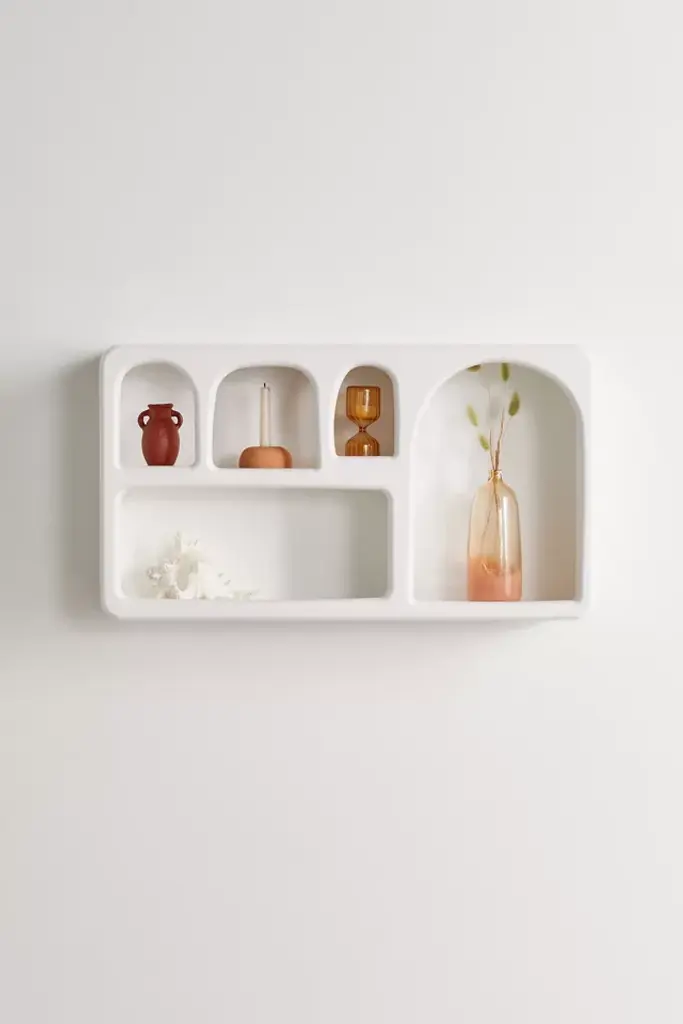 Bring a naturalistic bohemian feel to your space with this UO-exclusive wall shelf. Featuring five cubbies in a variety of sizes to show off your favorite trinkets and treasures. Mounts to wall; hardware not included.