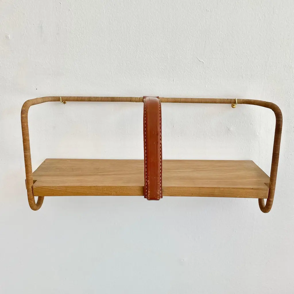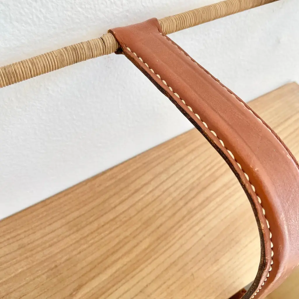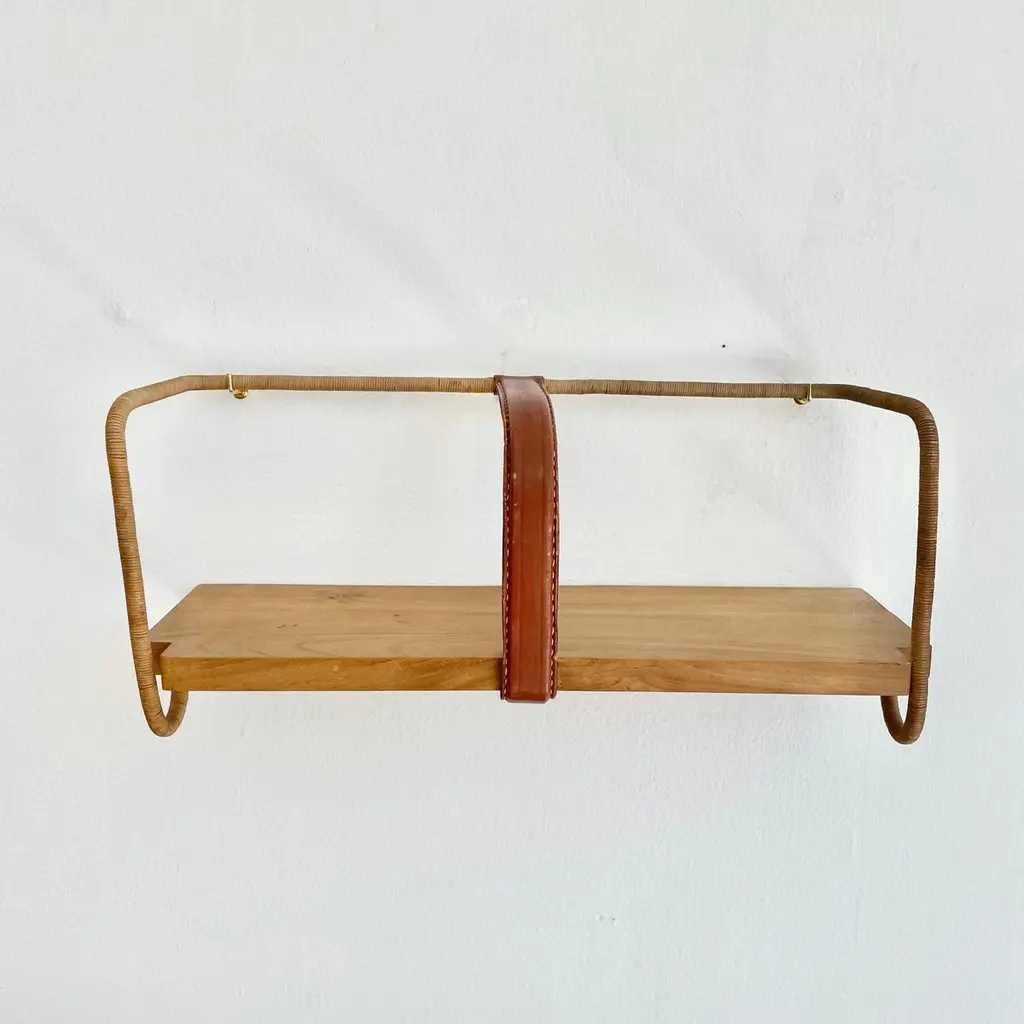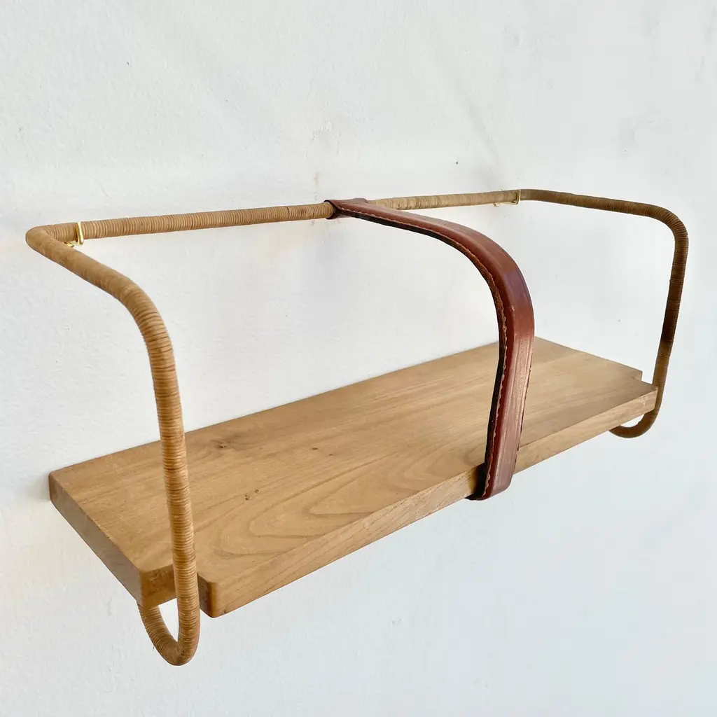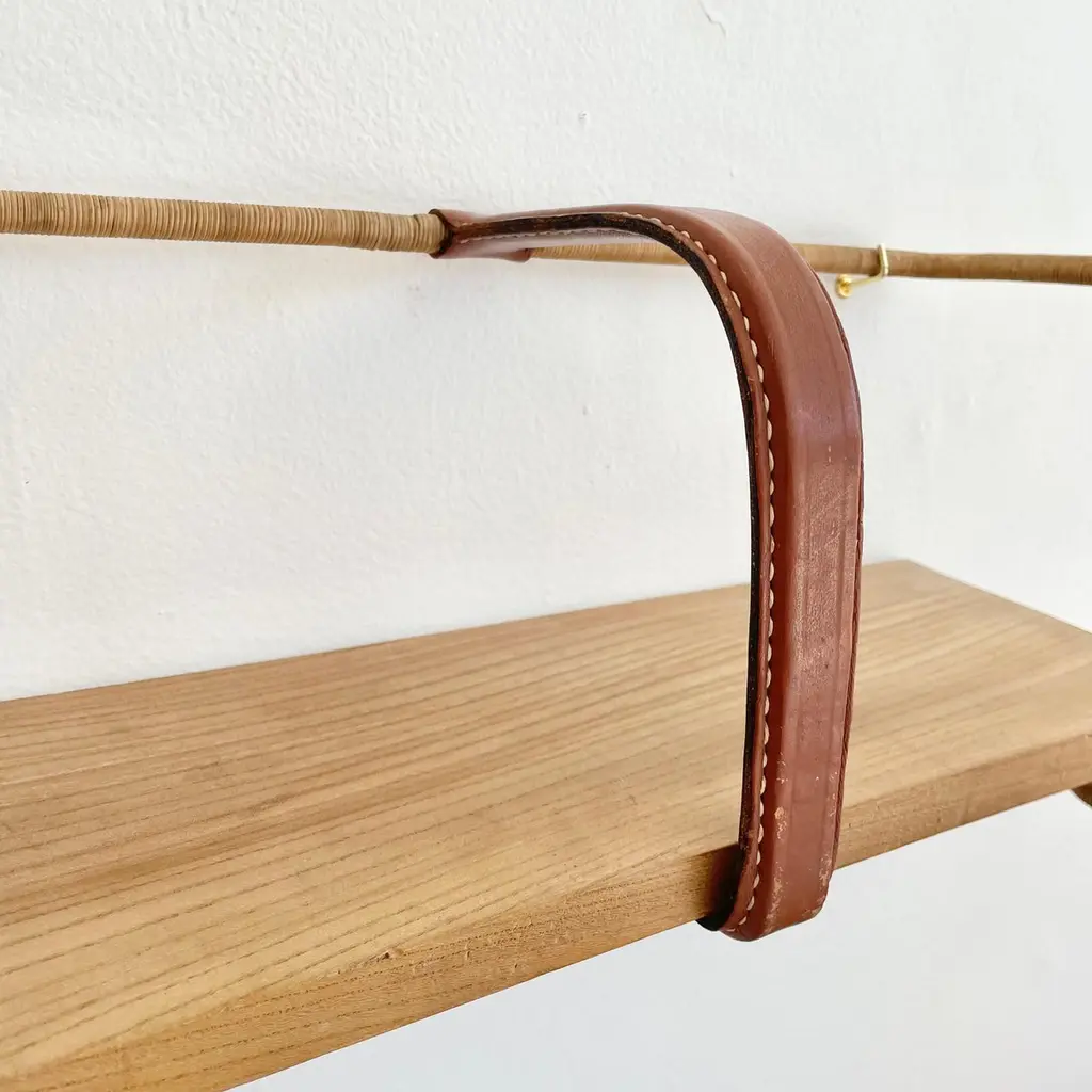 Jacques Adnet Leather, Wood And Twine Shelf, 1950s France