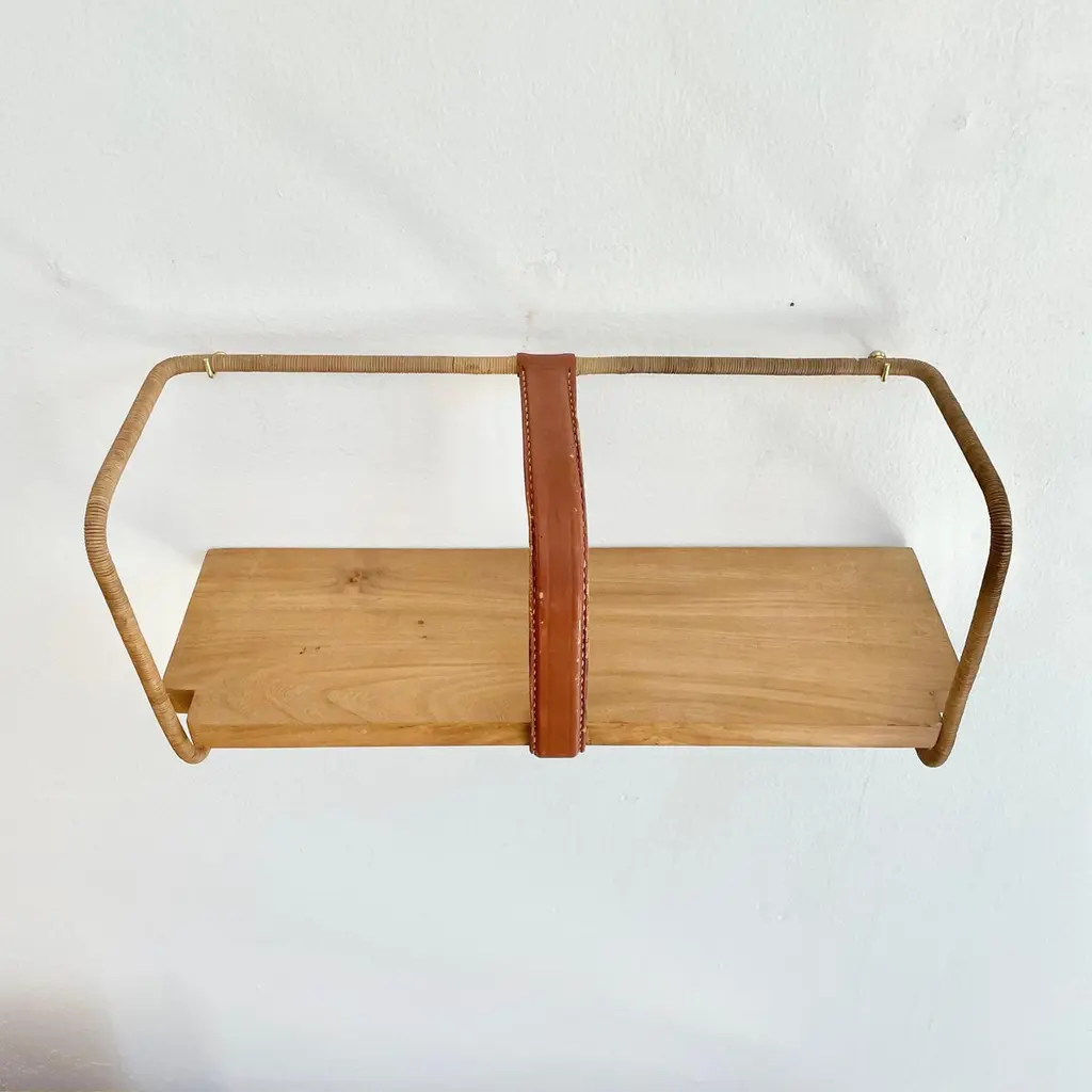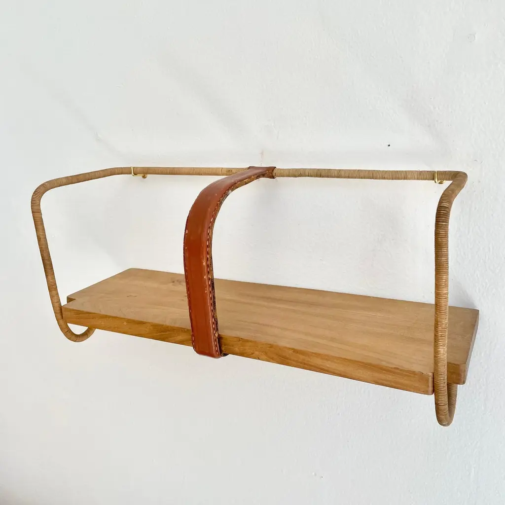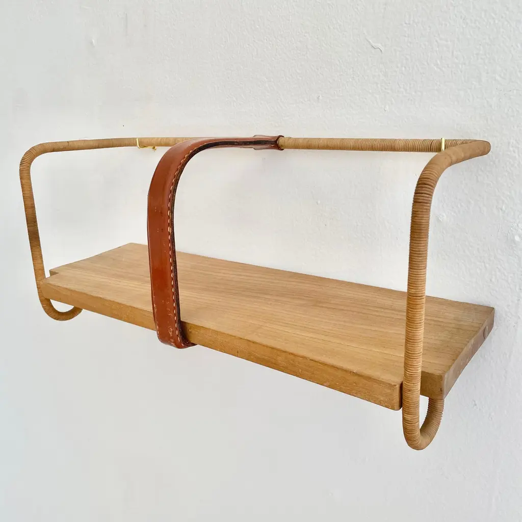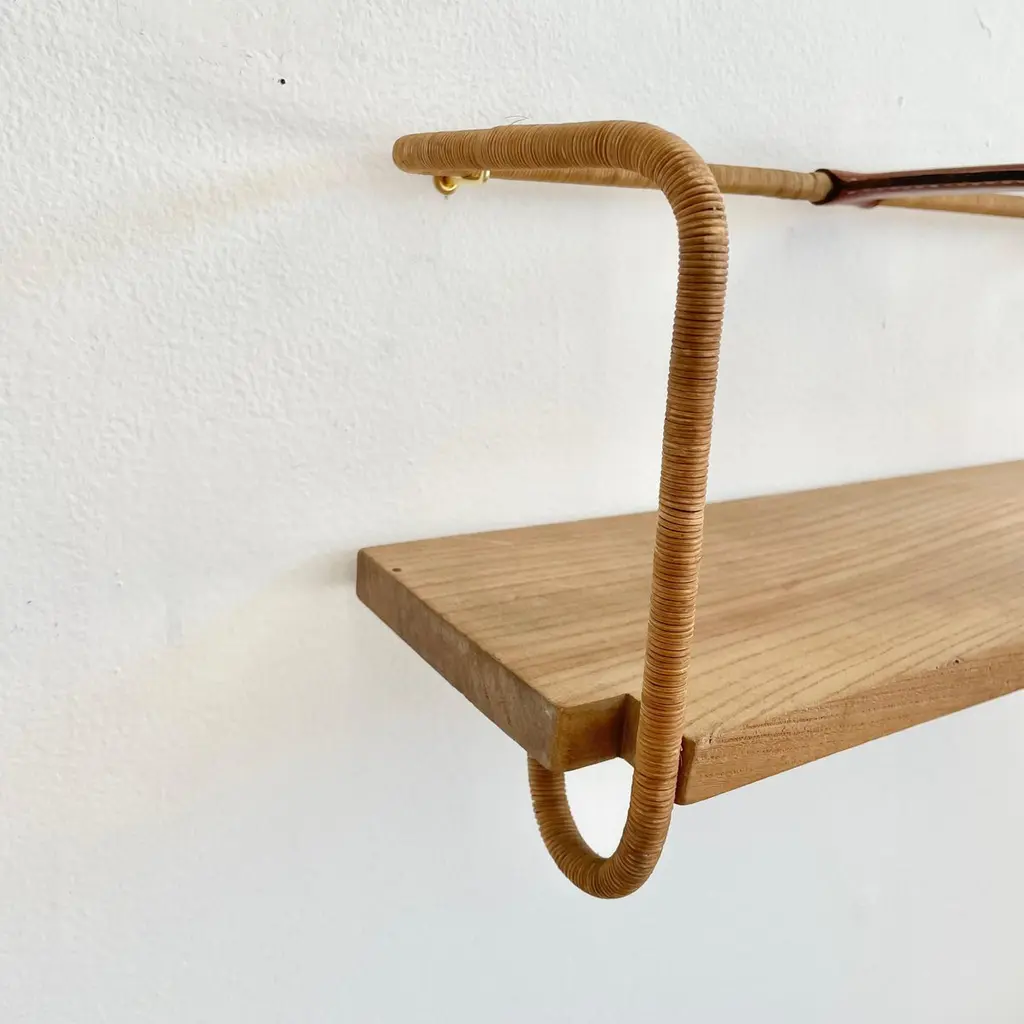 Jacques Adnet Leather, Wood And Twine Shelf, 1950s France