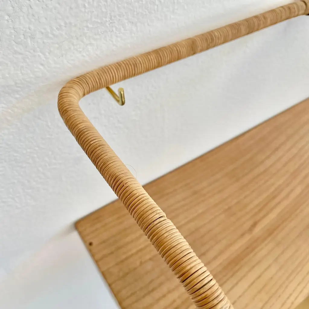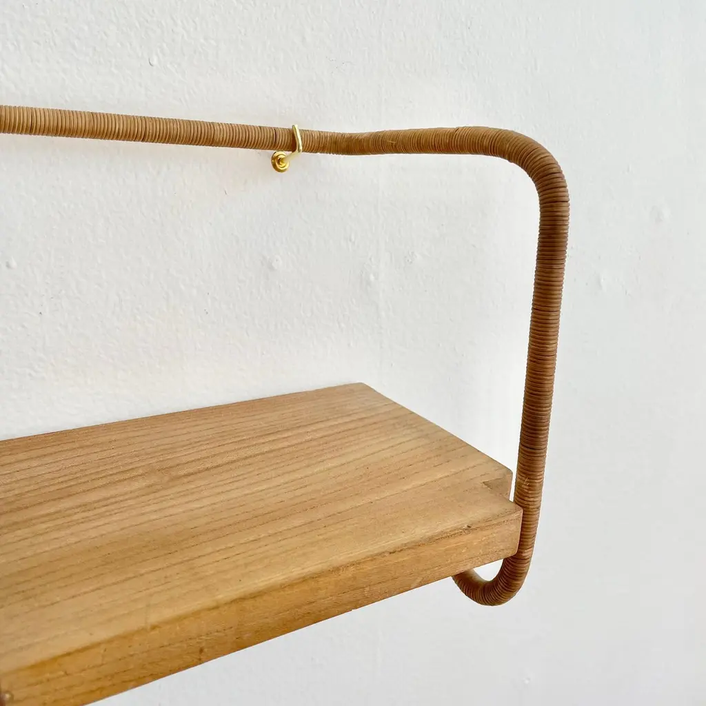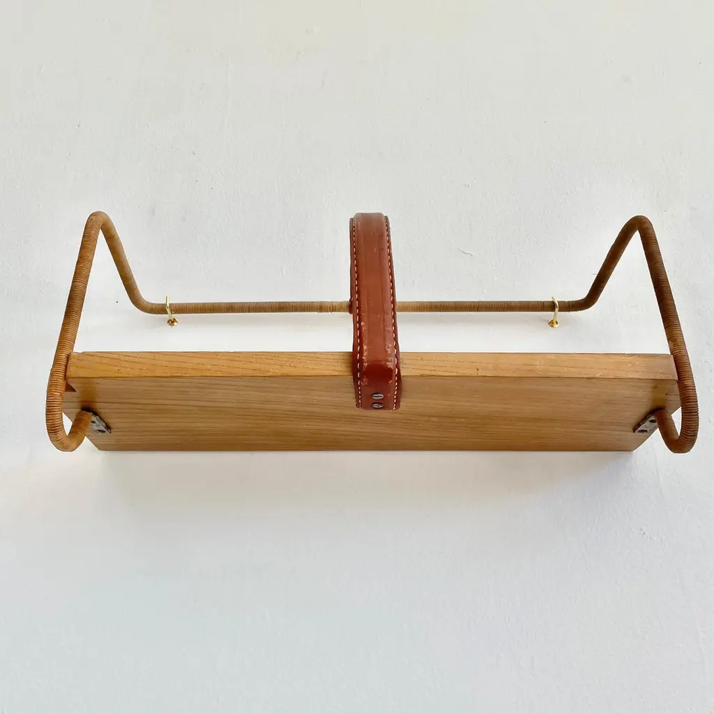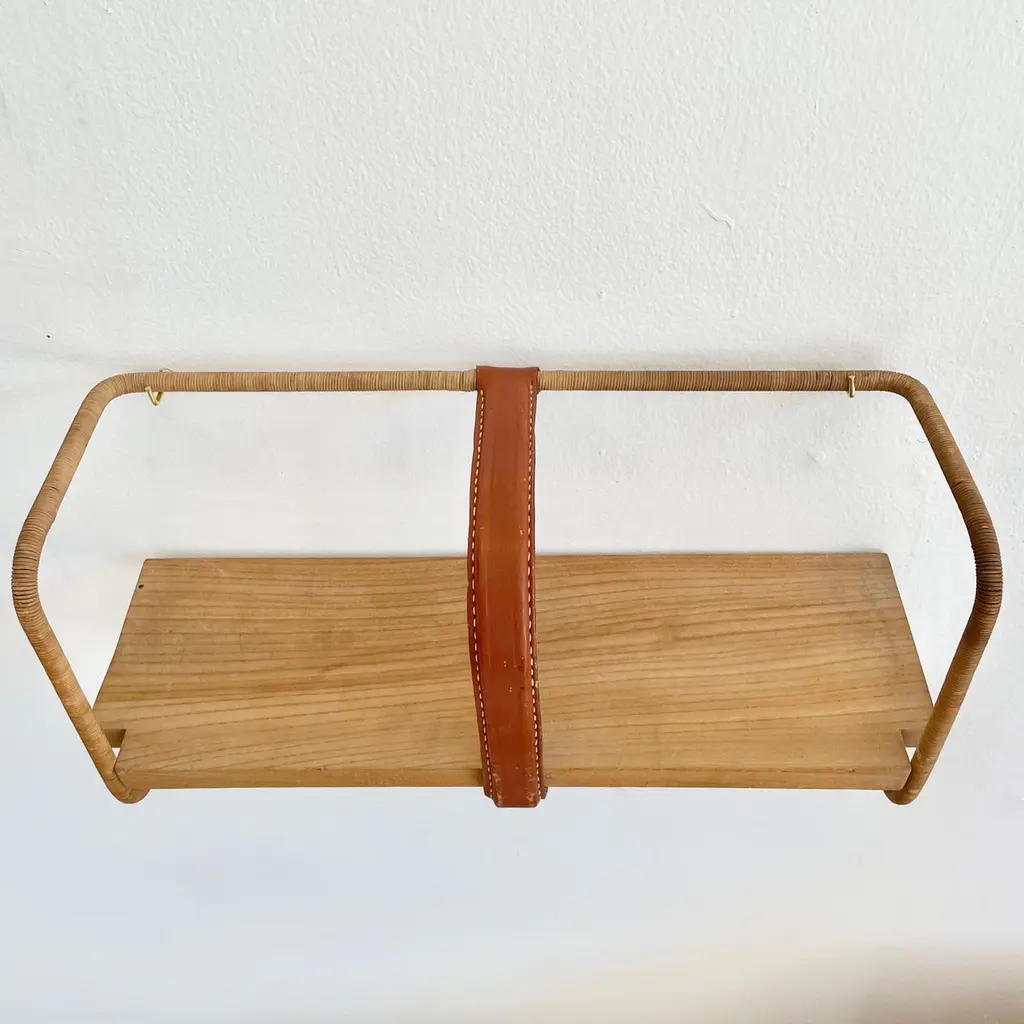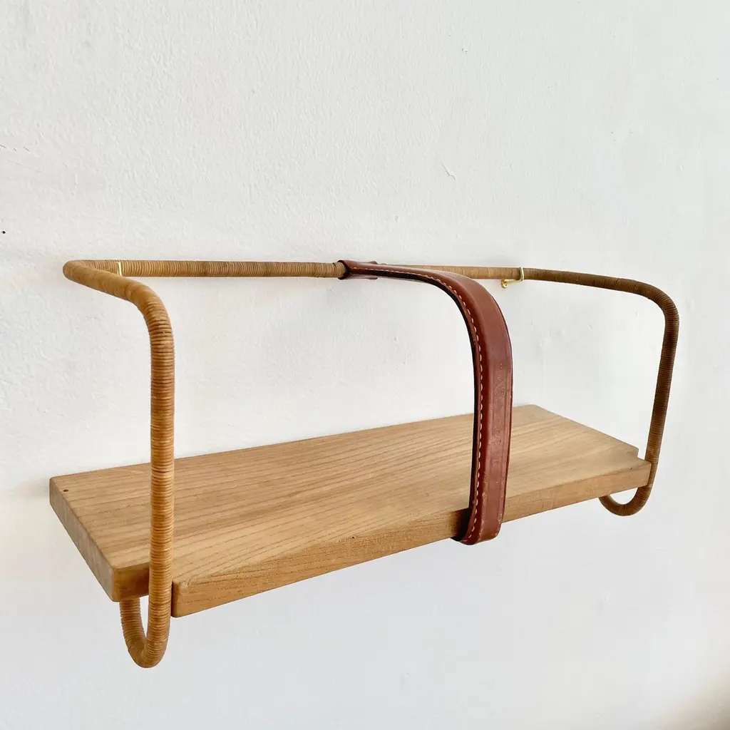 Jacques Adnet Leather, Wood And Twine Shelf, 1950s France
