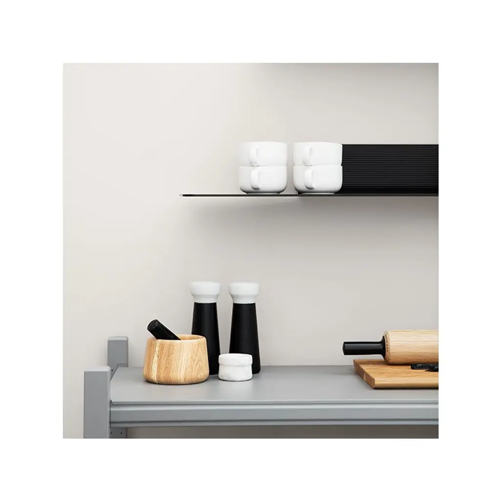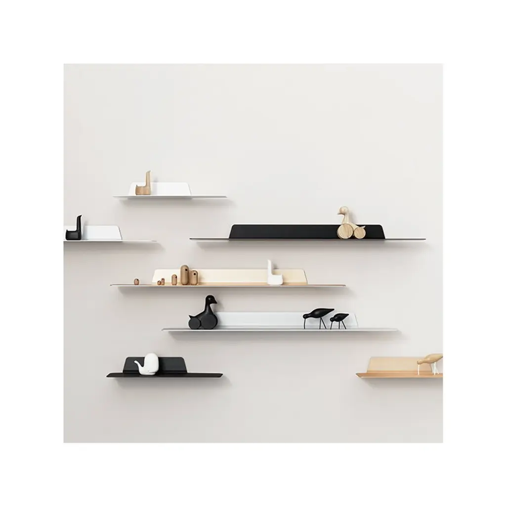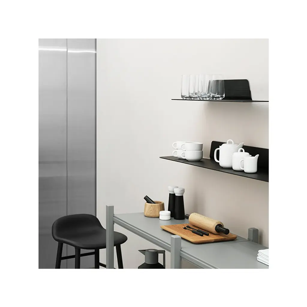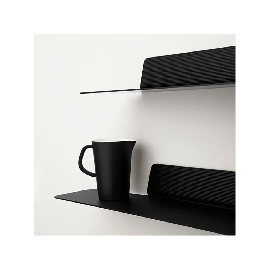 Normann Copenhagen’s Jet shelves feature a clean-lined, industrial design that brings in mind the aerodynamic parts of a jet fighter. Designed by Danish Simon Legald, the lightweight aluminum shelves have a grooved surface that is not only attractive but pleasant too: objects are less likely to slide around. The Jet collection is perfect for both storage and display at home and in the office.