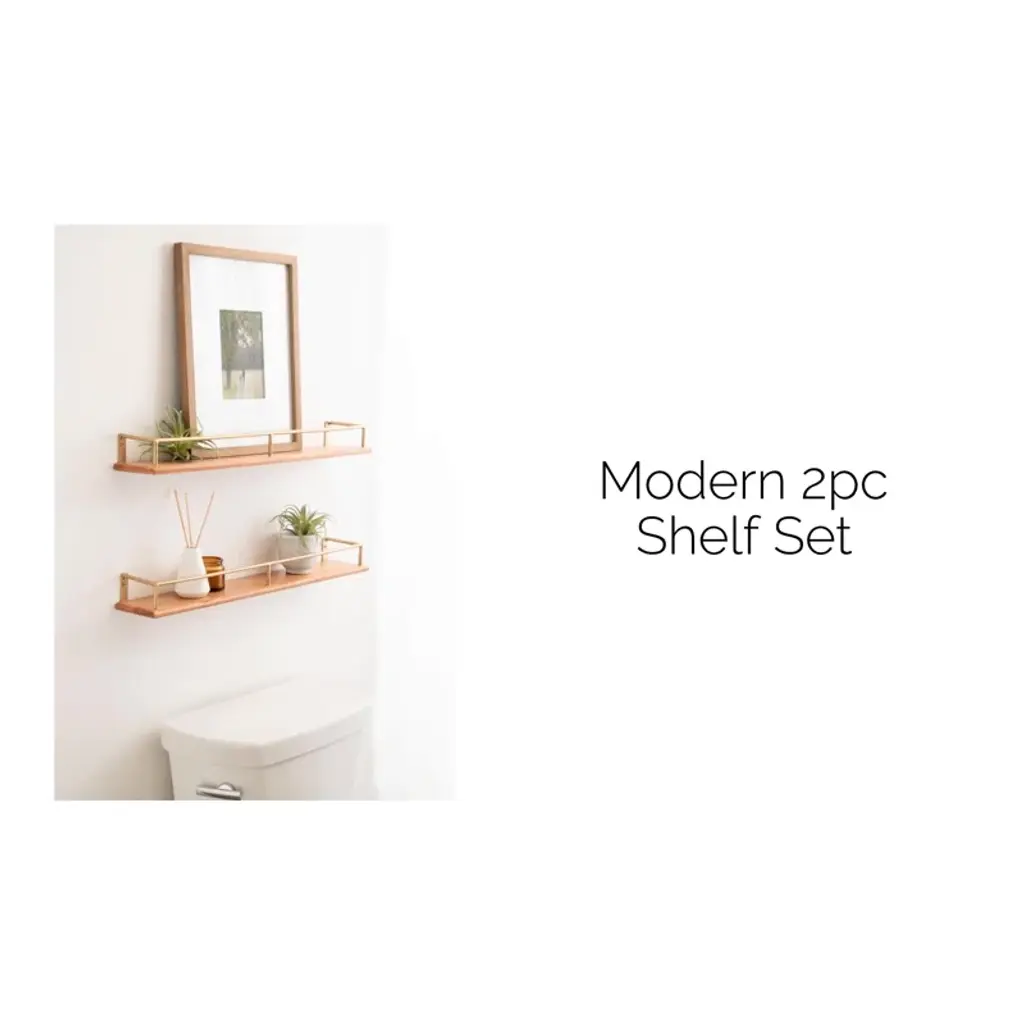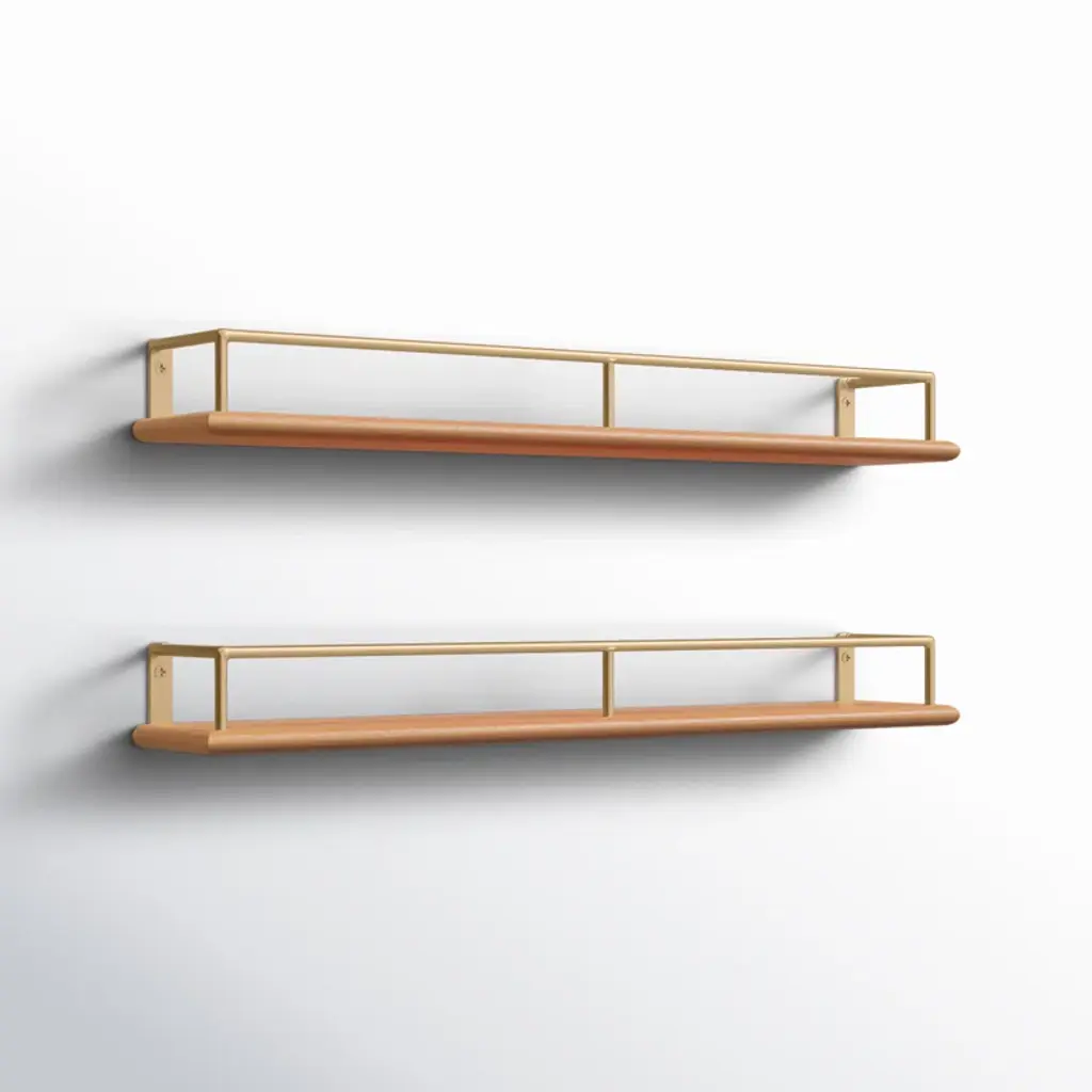 Jinny Camryn Wood And Metal Shelf 24" Natural, Gold (Set Of 2)