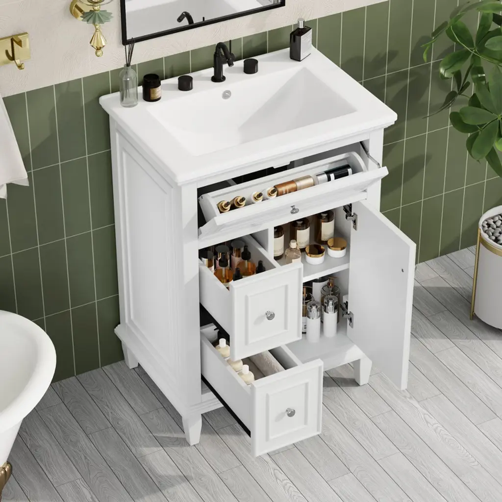 Jujabu 24" White Bathroom Vanity With Ceramic Sink, 2 Drawers And Adjustable Shelf