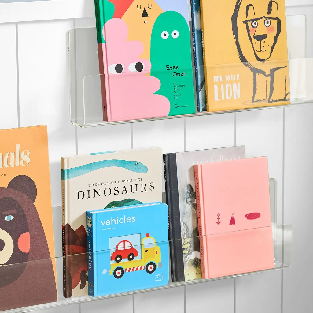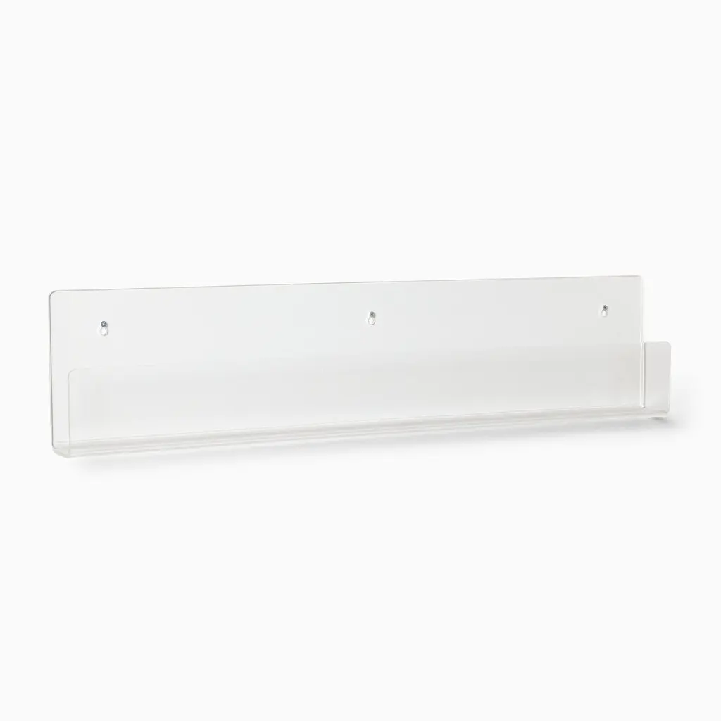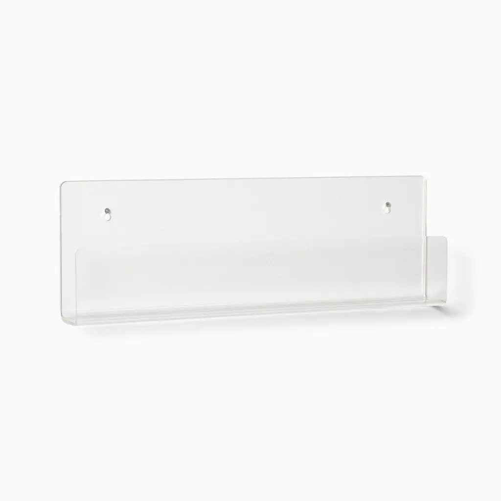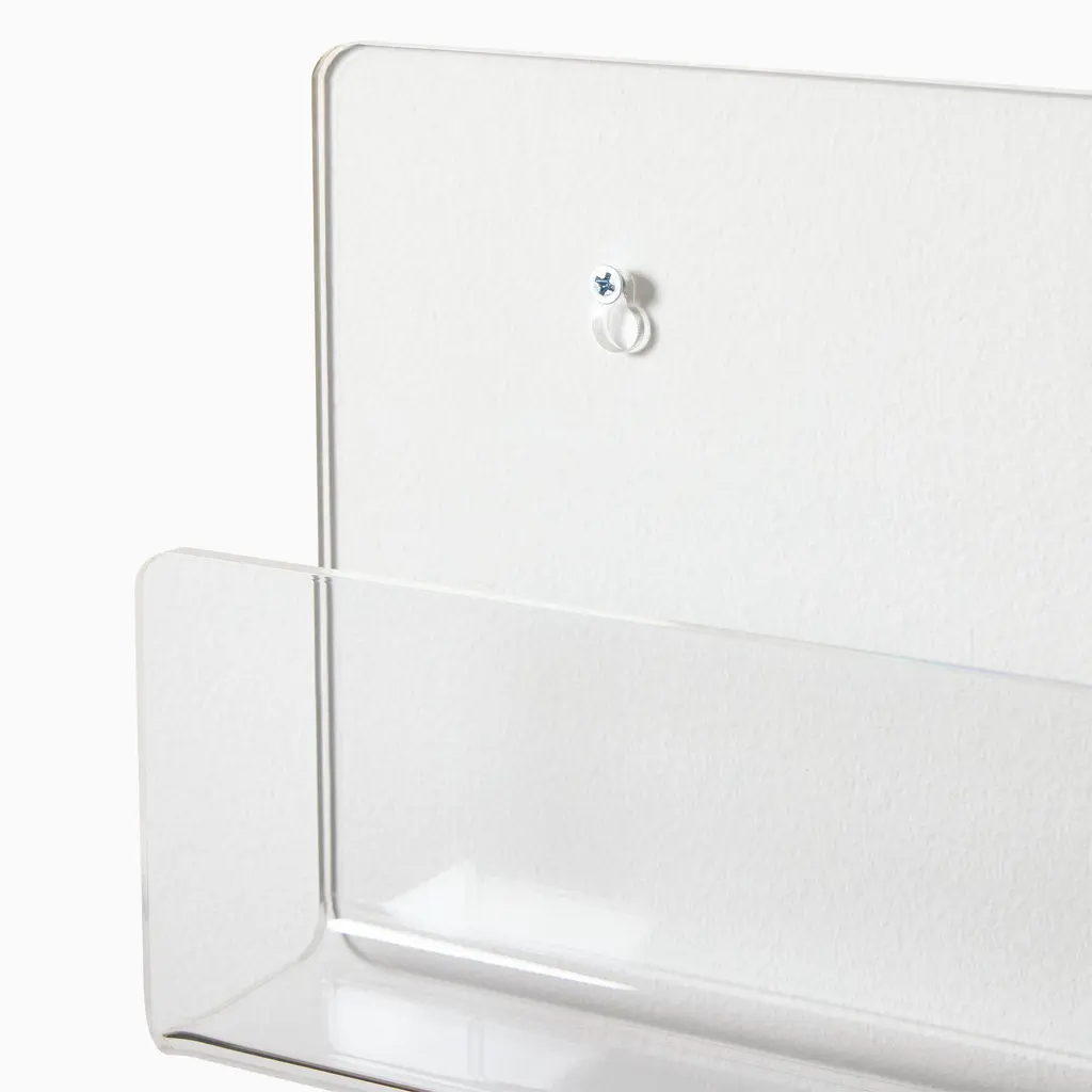 A sleek display for favorite books or photos. Acrylic is both sturdy and stylish. Available in your choice of clear or glitter. Easy to hang (plus the hardware's included).