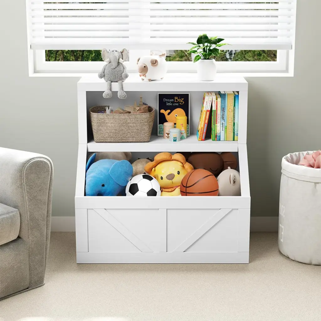 Kids Bookshelf And Toy Storage, 2 Tier Toy Organizer With Storage Cabinet, Toddler 2 Shelf Bookcase