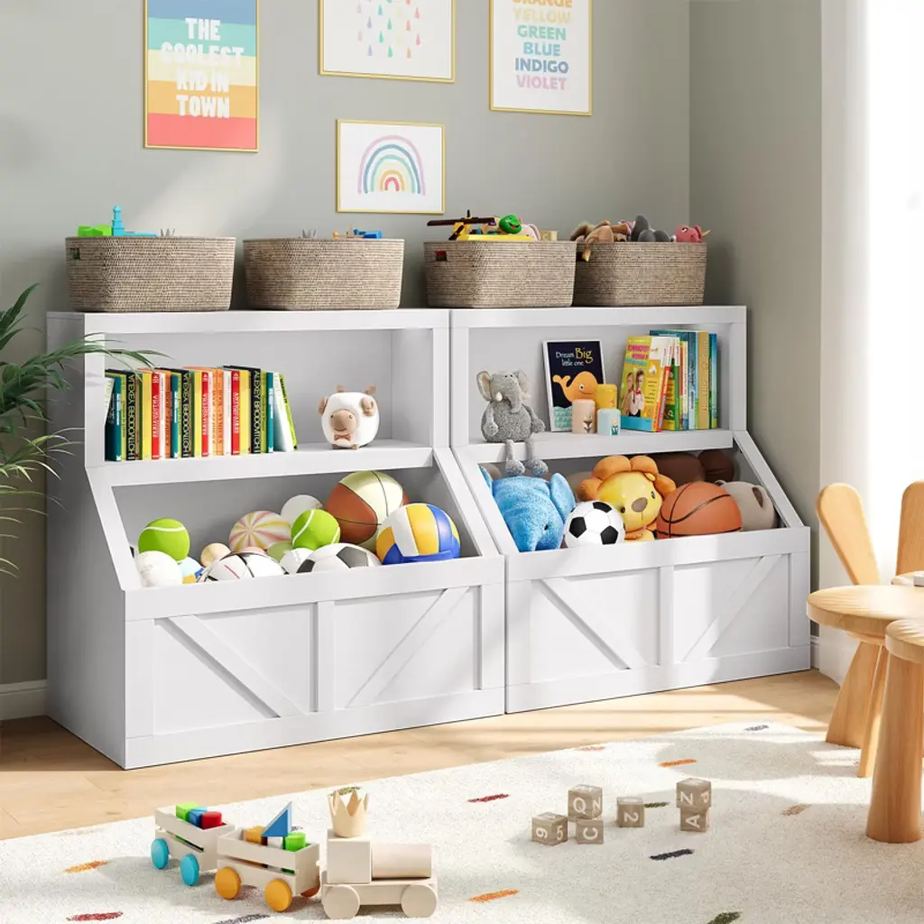 Kids Bookshelf and Toy Storage, 2 Tier Toy Organizer with Storage Cabinet, Toddler 2 Shelf Bookcase for Playroom, Bedroom, Living Room, Classroom