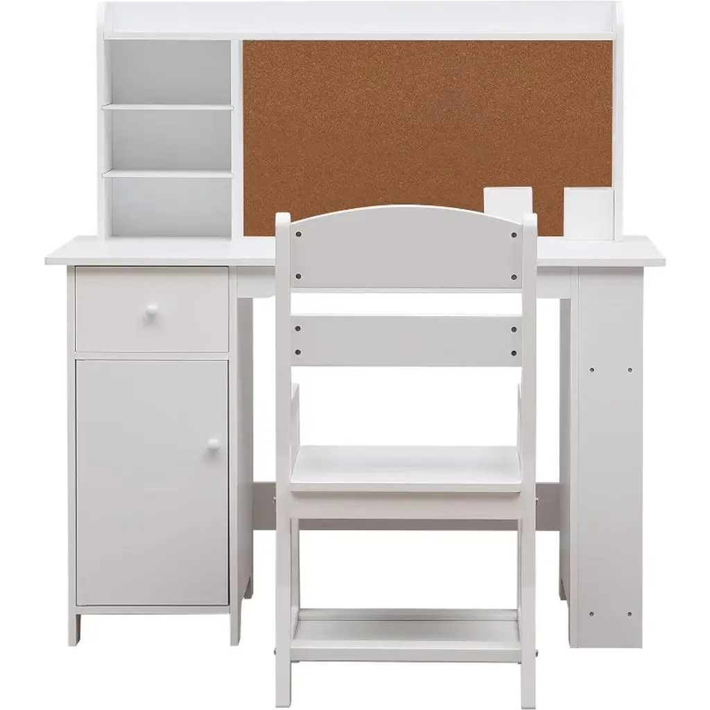 Kids Desk And Chair Set, Wooden Study Table With Storage Shelf, Bulletin Board, Children School Learning Desk Set, Writing Table For Boys And Girls