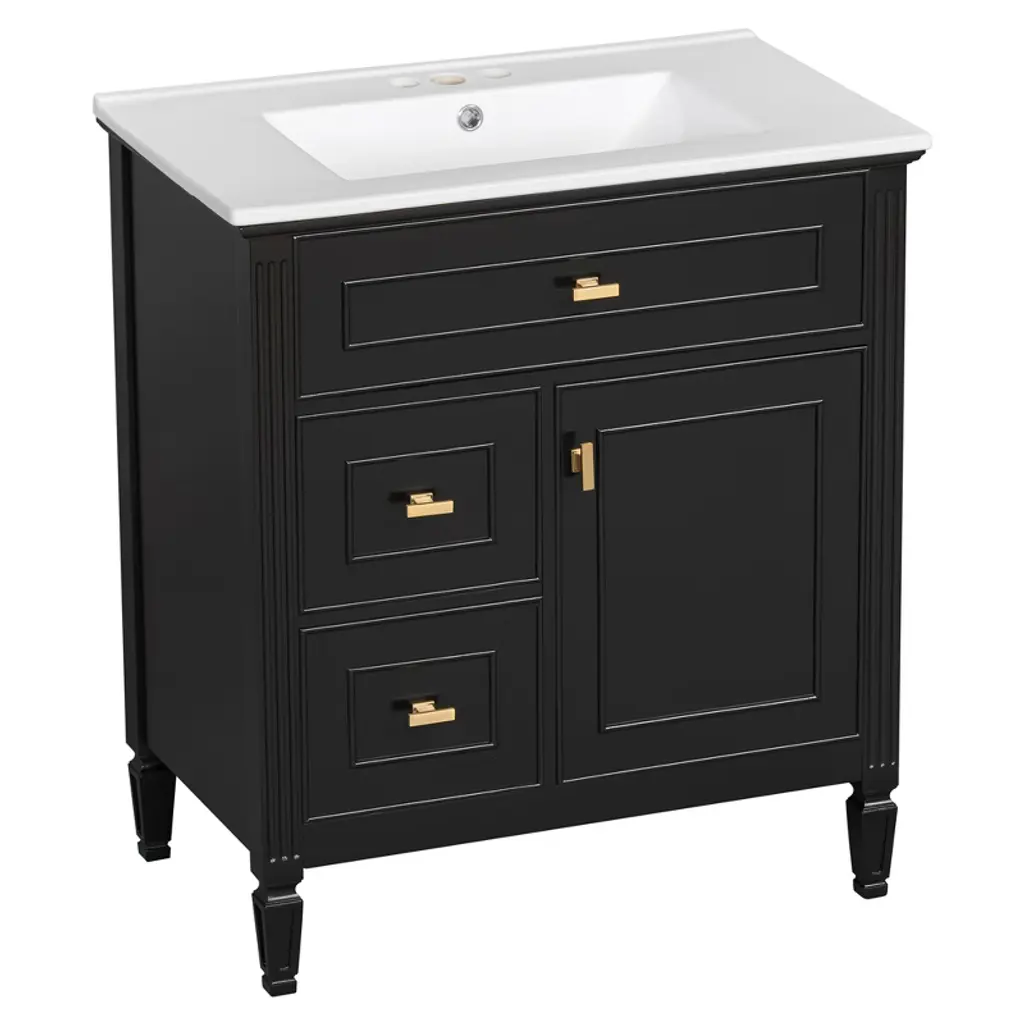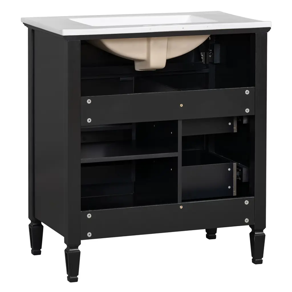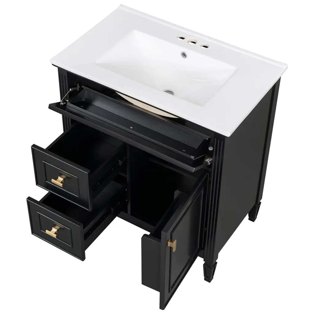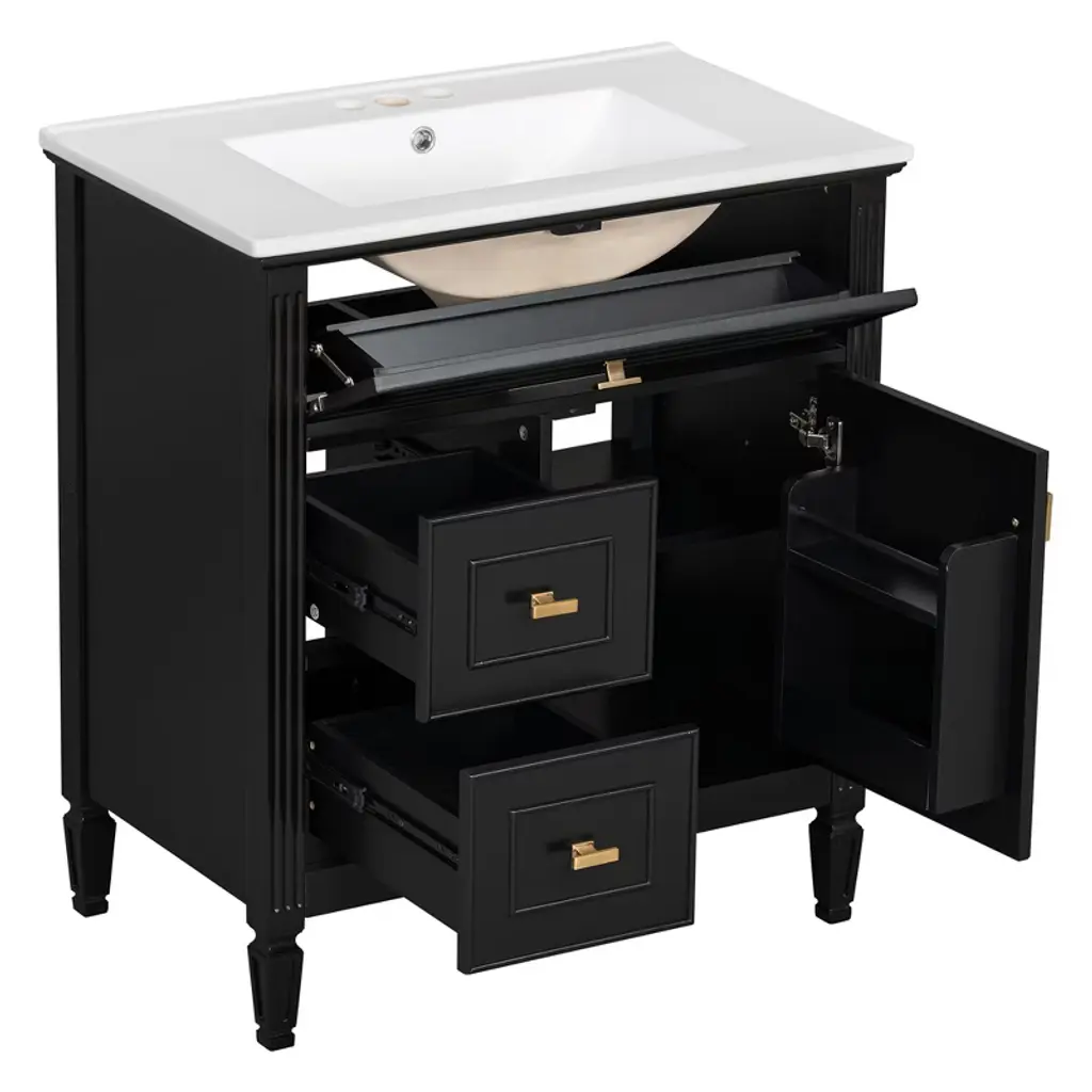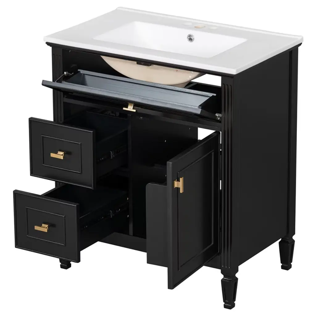 Kigftsod 30" Bathroom Vanity With Sink, Bathroom Vanity Cabinet With One Flip Drawer And Two Drawers, Adjustable Shelf,black