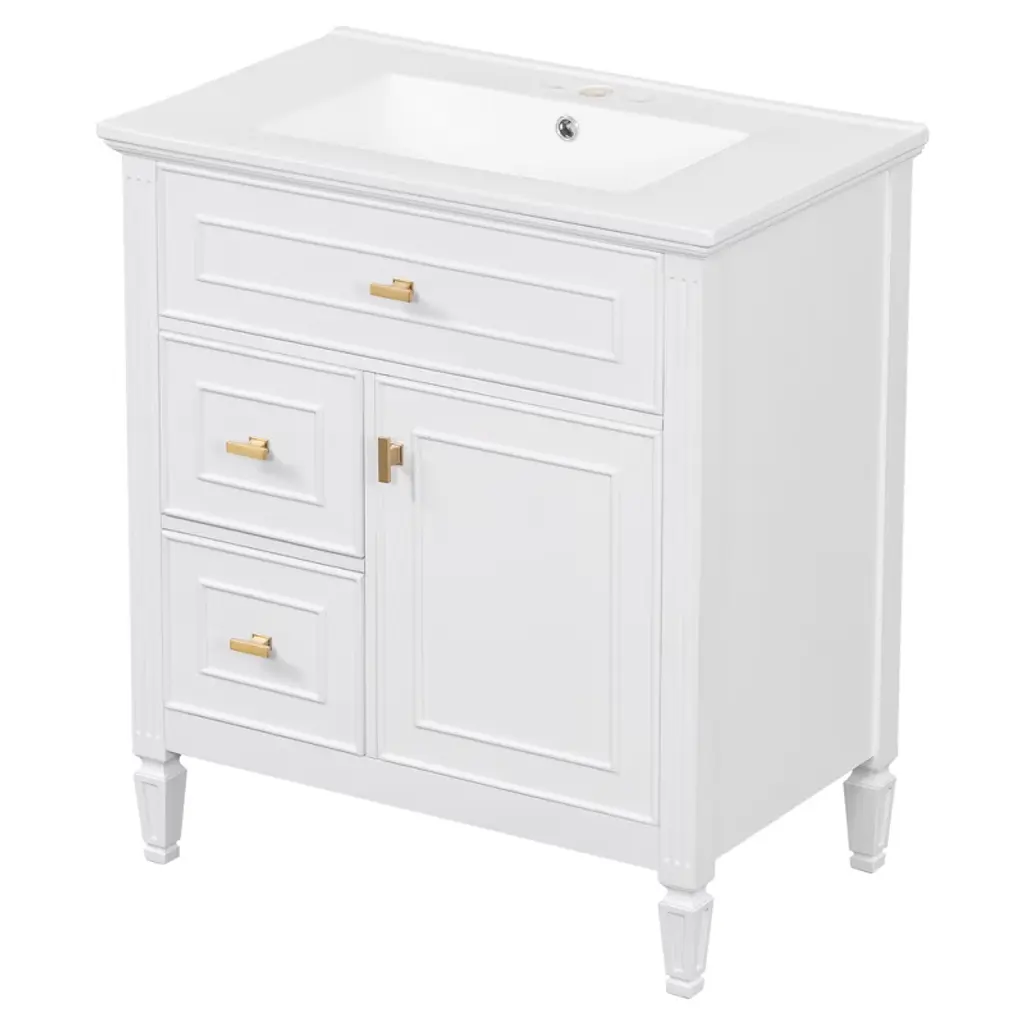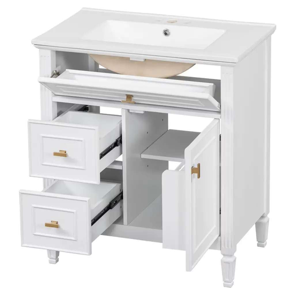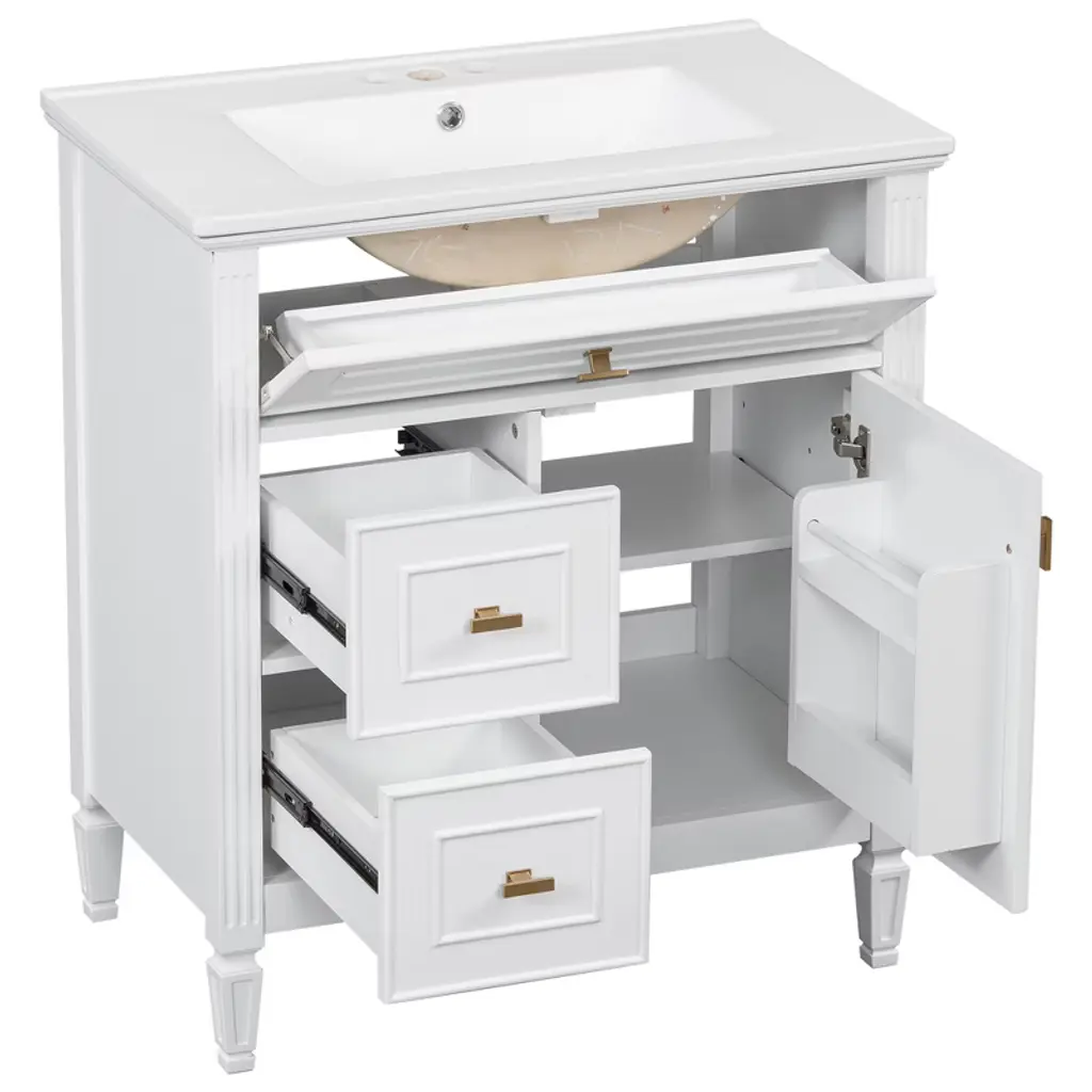 Kigftsod 30" Bathroom Vanity With Sink, Bathroom Vanity Cabinet With One Flip Drawer And Two Drawers, Adjustable Shelf,white