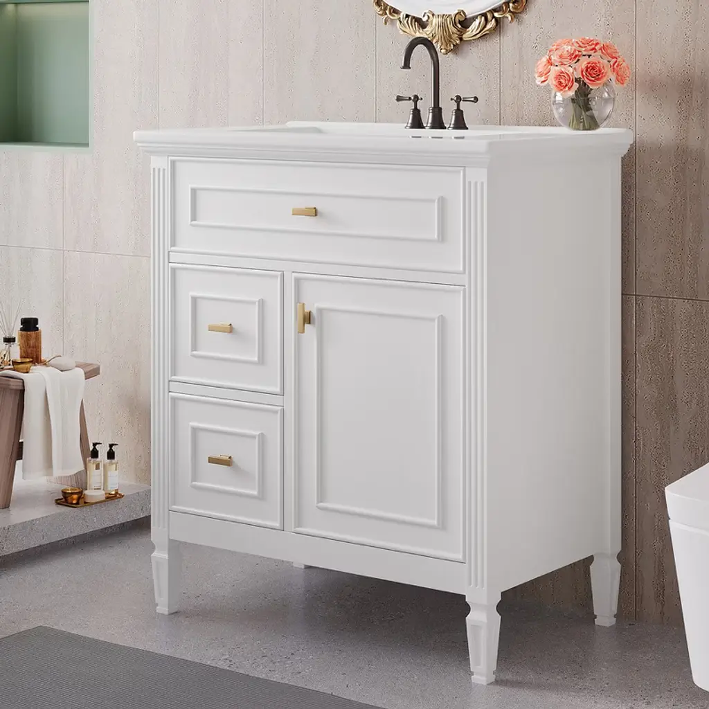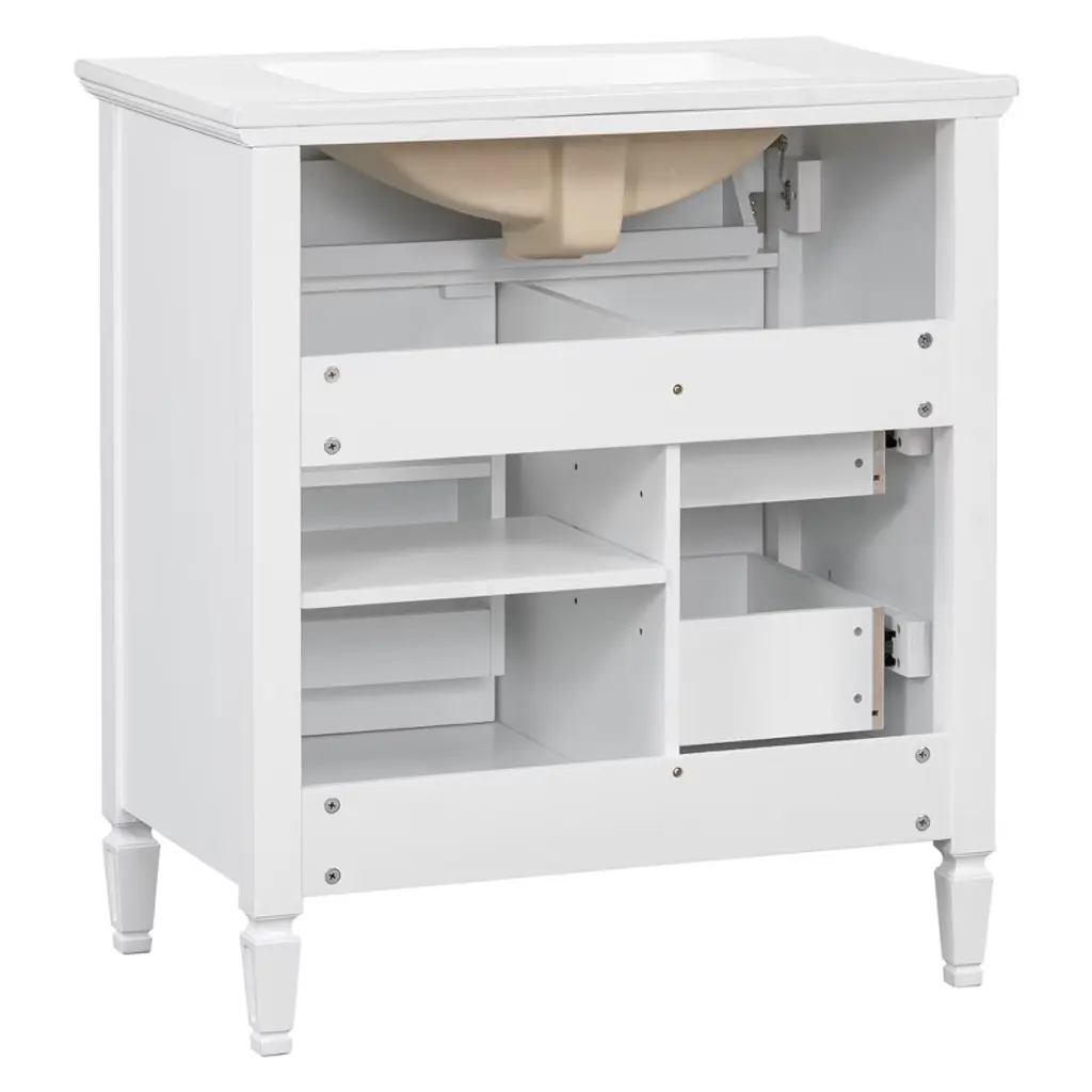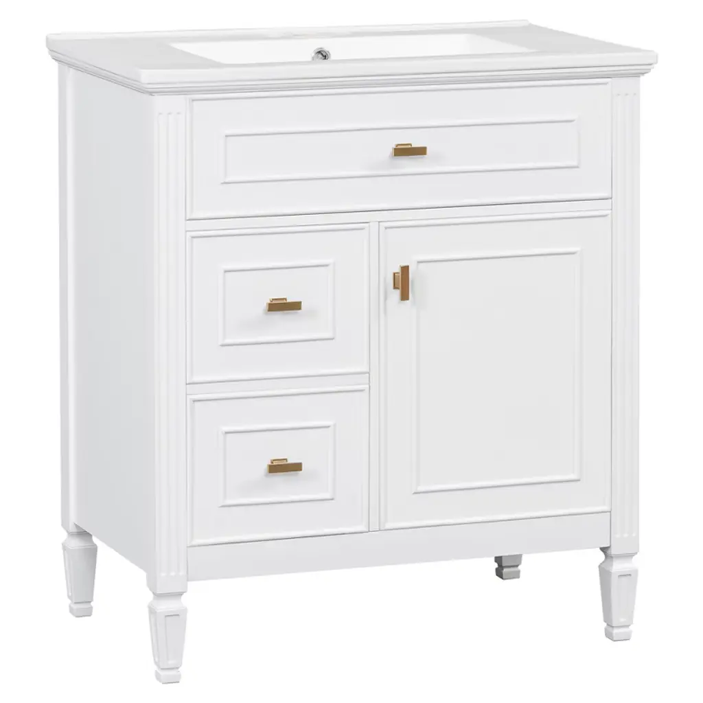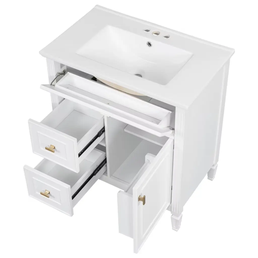 Kigftsod 30" Bathroom Vanity With Sink, Bathroom Vanity Cabinet With One Flip Drawer And Two Drawers, Adjustable Shelf,white