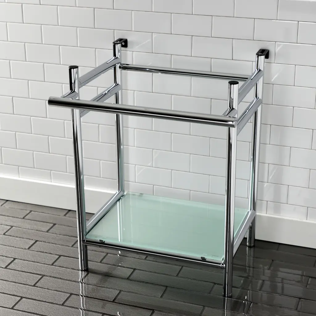 Kingston Brass Fauceture Stainless Steel Console Sink Base With Glass Shelf - Frosted Glass/polished Chrome