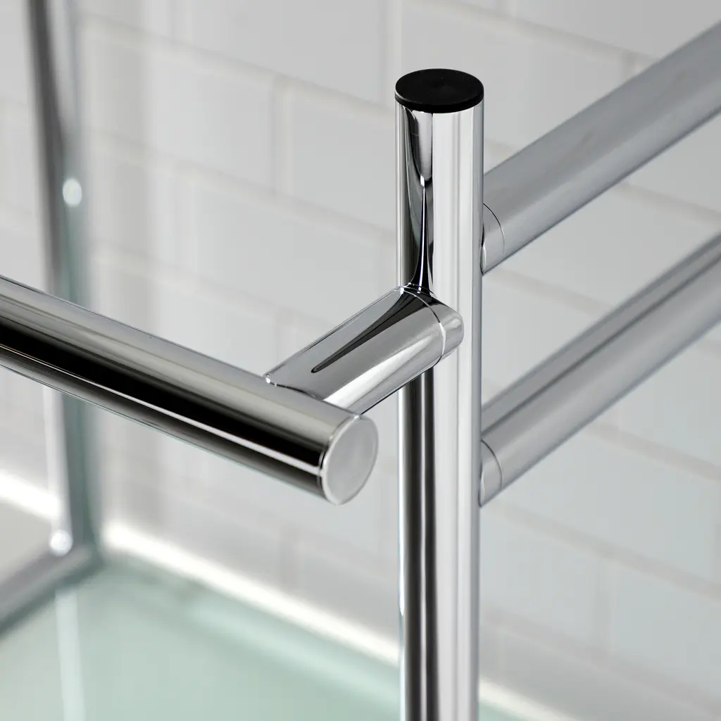 A simple minimalist support for your console sink tops, this sink base comes in a multitude of finishes that will bring out the shine in your bathroom. The Sheridan 22-inch console sink legs is constructed out of stainless steel and is designed for durability and reliability to last for years to come. This console sink legs includes tempered glass storage shelf and 24" front towel bar for your convenience. Pair these legs with a console top, available in multiple materials.FeaturesStainless steel and tempered glass constructionOverall dimensions: (L)24" x (W)14-5/8" x (H)29-1/2"1-1/4" (32mm) OD stainless steel vertical tubingSink and top sold separatelyIncludes glass shelf