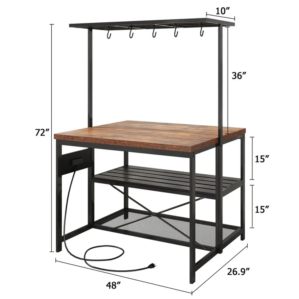 Kitchen Island With Storage, Bakers Rack With Power Outlet, Island Table,3 Tier Microwave Stand Oven Shelf,large Coffee Bar Table, Storage Shelf