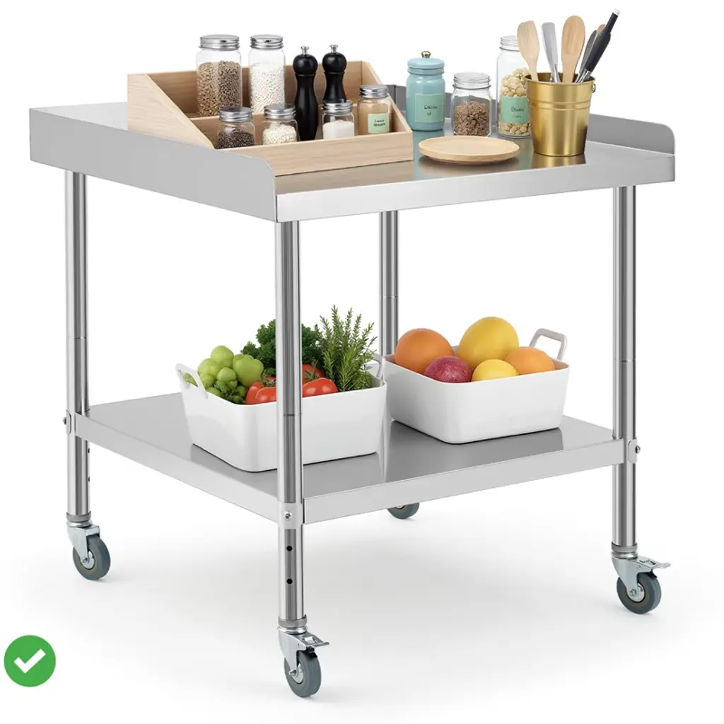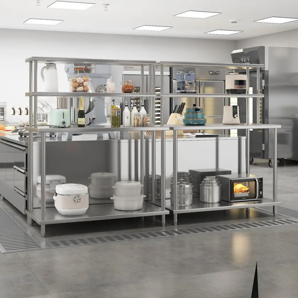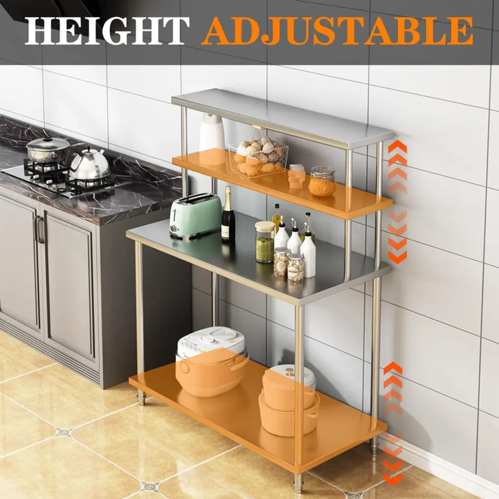 Crafted from high-quality stainless steel, this work table is designed to withstand the rigors of commercial use. Its robust construction ensures resistance to rust, corrosion, and daily wear, making it an ideal choice for busy kitchens, warehouses, and garages. The included adjustable overshelves provide valuable additional storage space for kitchen tools, equipment, and supplies. With customizable heights, these shelves can accommodate items of various sizes, helping you optimize your workspace organization. This work table is ideal for a wide range of environments, including restaurants, catering services, workshops, garages, and warehouses. Its versatility makes it an essential tool for chefs, mechanics, bakers, and more.