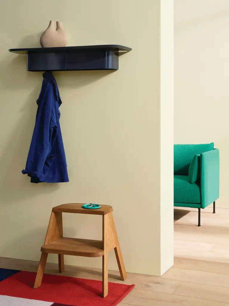 Korpus is a series of colorful wall-mounted shelves created for HAY by Norwegian product designer Andreas Bergsaker. A durable, versatile option that can be used in many rooms, Korpus is made from sheet aluminum, known for its lightness, strength, and ability to be reused countless times. The aluminum undergoes an industrial stamping and punching process to be formed into the distinctively curved column and top.