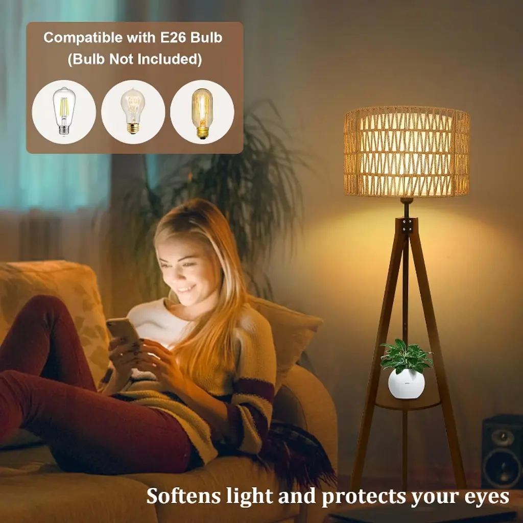 Ktmbdw Tripod Floor Lamp, Mid Century Wood Standing Lamp, Modern Design Shelf Floor Lamp For Living Room, Bedroom, Office, Brown