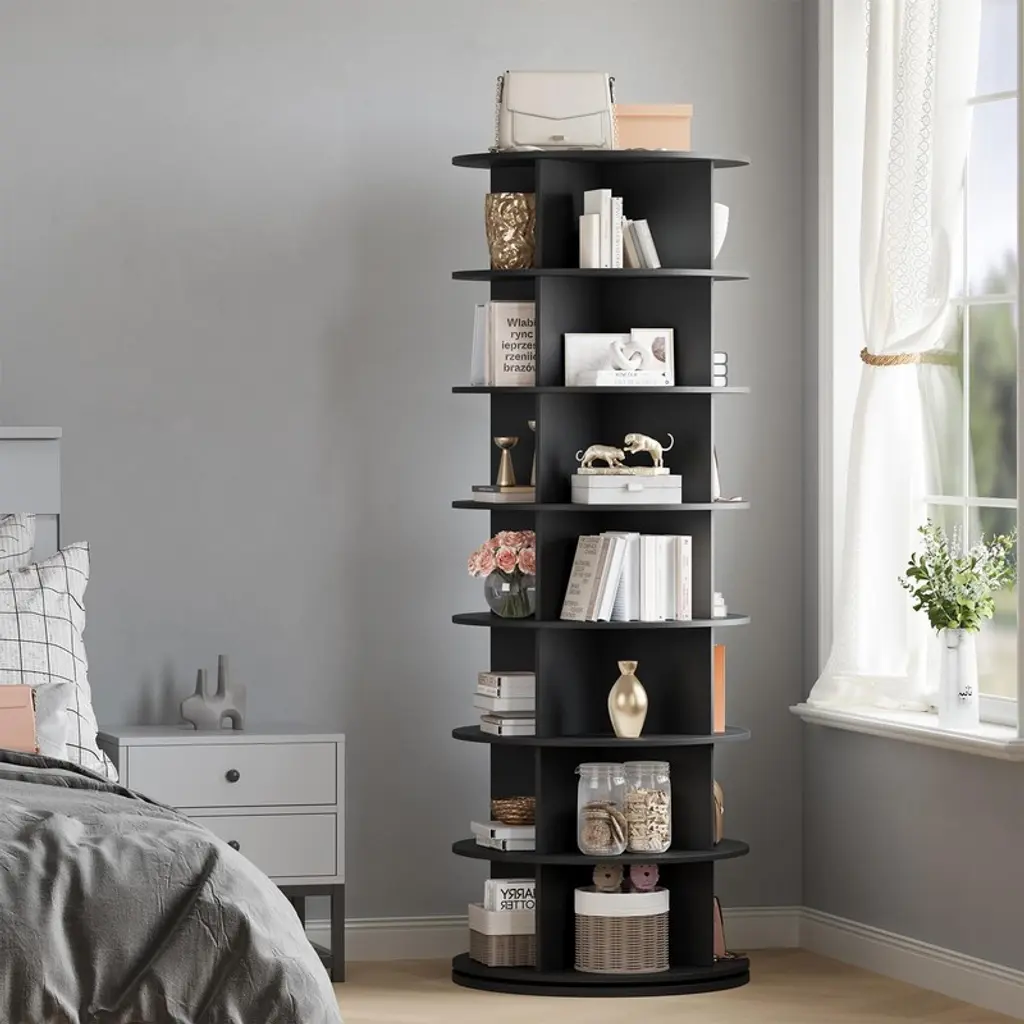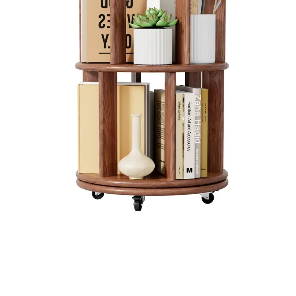 Crafted from 100% natural rubberwood, this rotating bookshelf offers both durability and elegance. The wood’s unique grain and texture provide a visually pleasing and tactile experience, while its modern white, walnut, and natural wood finishes complement any room decor. Designed for convenience, this 360° rotating bookcase allows easy access to your favorite books with a simple spin. It’s equipped with lockable caster wheels to ensure stability and safety, even in busy households with kids or pets. The multi-level design is customizable, offering ample space for books, decorations, and more. Choose the number of levels that best fit your space and storage needs. With upgraded hardware and a detailed assembly guide, setting up your bookshelf is effortless.