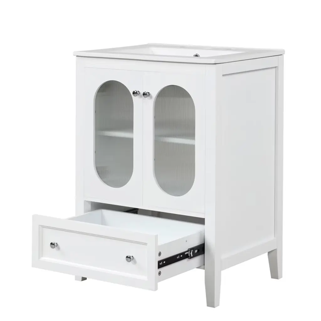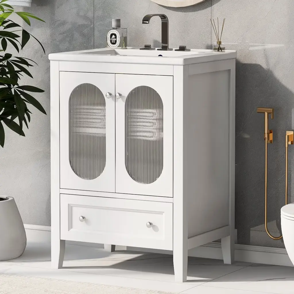 Kwpzqeb 24" Bathroom Vanity With Sink, Free Standing Bathroom Storage Cabinet With Drawer, Doors & Adjustable Shelf, Wooden Bathroom Cabinet, White