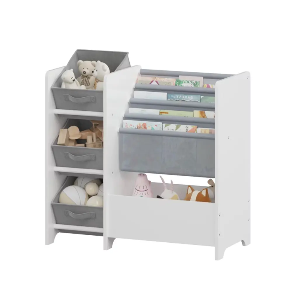 This Montessori room organizer includes a children's bookshelf and toy storage, perfect for storing children's belongings while creating a reading or play area for your child. Its multi-layered design allows for easy organization of a variety of books, including reading materials, coloring books, comic books, and picture books. The toy shelf has three drawers for storing a variety of plush toys.