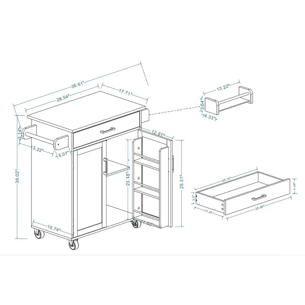 Kwpzqeb Kitchen Island Rolling Trolley Cart, Rolling Kitchen Island Cart With Spice Rack, Adjustable Shelf, 2 Doors & Drawer, Kitchen Cart For Kitchen