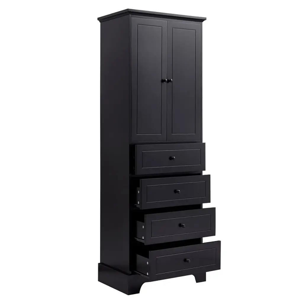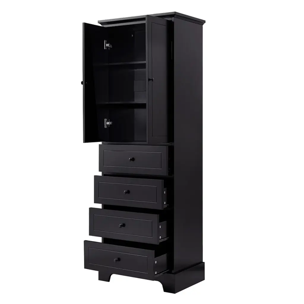 Kwpzqeb Tall Storage Cabinet With 2 Doors And 4 Drawers, Pantry Cabinets With Adjustable Shelf, Kitchen Cabinets For Living Room, Dining Room, Black