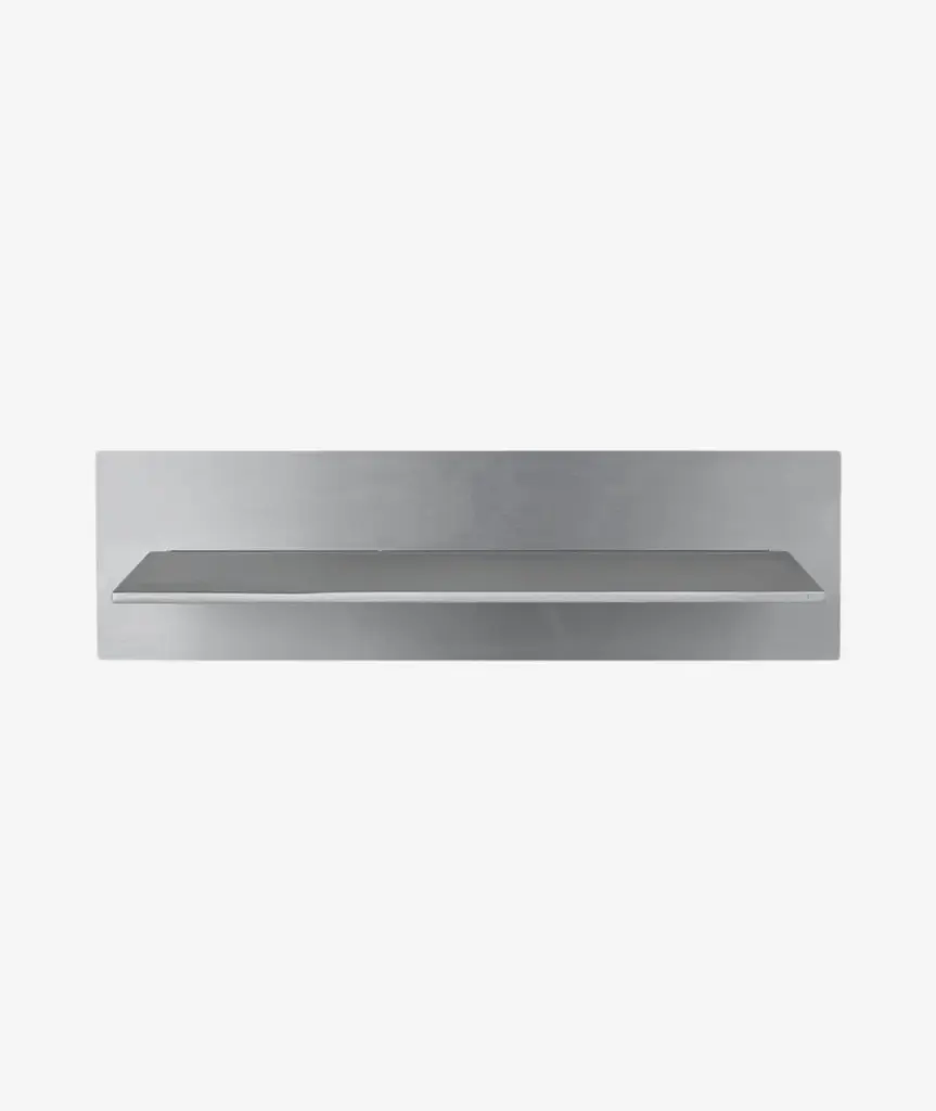 Crafted from aluminum and referencing industrial and brutalist aesthetics, the Lager Wall Shelf offers sleek, functional storage to any space. Its design facilitates simple wall installation using a French cleat hanging system, and the uniform spacing between sections allows for the stacking of multiple shelves, perfect for a cohesive and tall library display.