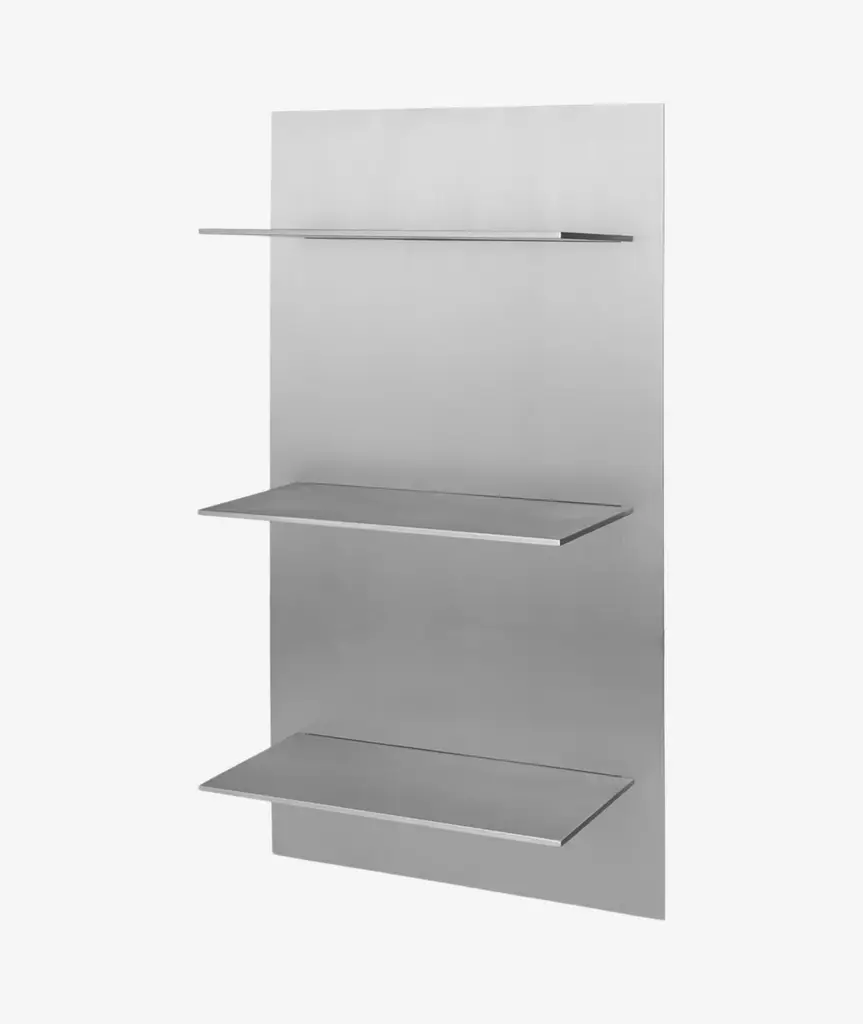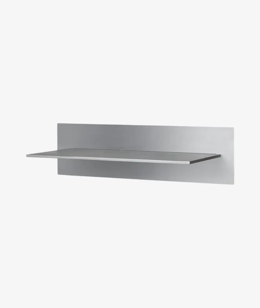 Crafted from aluminum and referencing industrial and brutalist aesthetics, the Lager Wall Shelf offers sleek, functional storage to any space. Its design facilitates simple wall installation using a French cleat hanging system, and the uniform spacing between sections allows for the stacking of multiple shelves, perfect for a cohesive and tall library display.