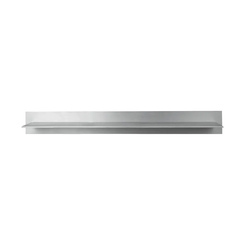 A slim, folded ledge in two lengths—quiet storage that actually holds. Part of Ferm Living’s Lager collection, the Single Wall Shelf is brushed aluminum with a shallow lip and backplate. Small spans 13.8″; Large reaches 33.5″—both 5.9″ deep with a 3.9″ back that sits clean against the wall. Low profile. Strong hold. That lip is the seen detail—it keeps glasses, notebooks, and keys from drifting while the brushed surface diffuses light and shrugs off fingerprints. Mount one by the door, stack a few over a desk, or run a long line in the kitchen for jars and small bowls. Simple to place; easy to live with.