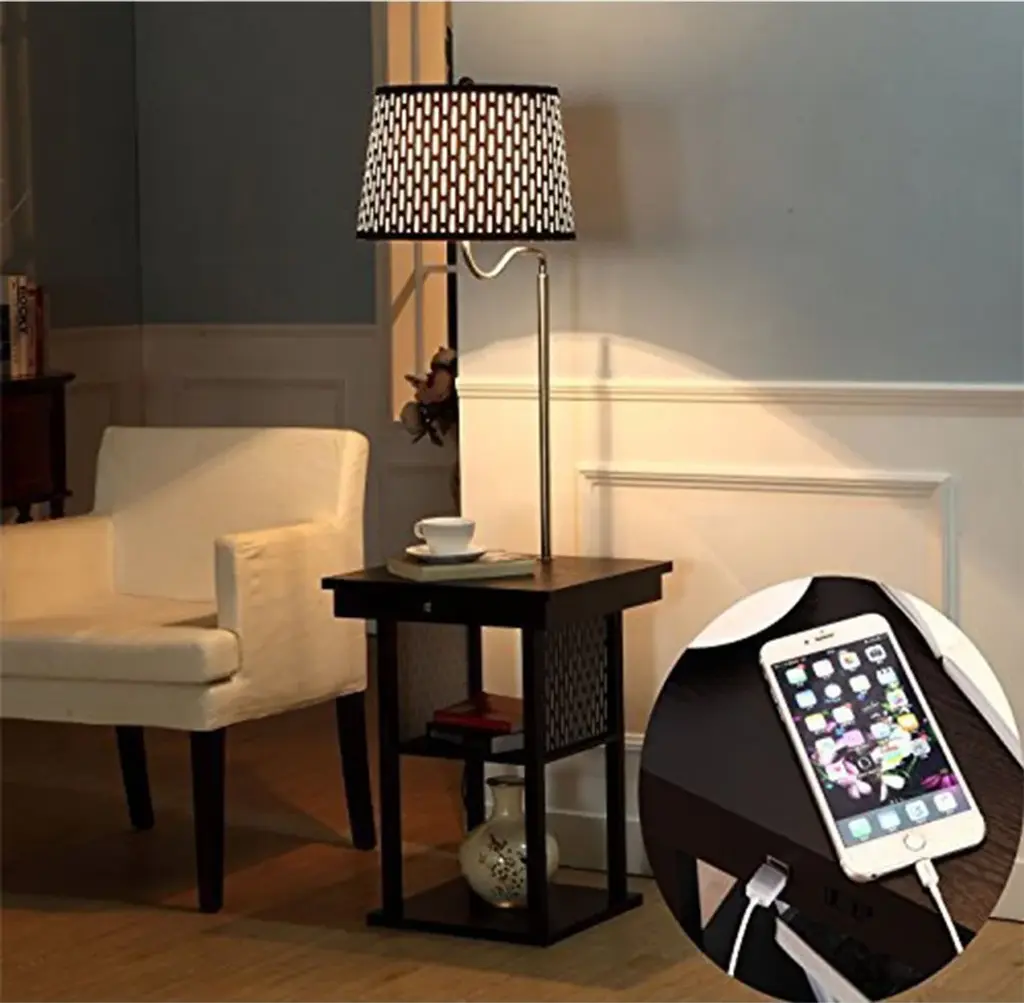 Led Floor Lamp Swing Arm Lamp With Shade And Built, End Table And Shelf, Pattern