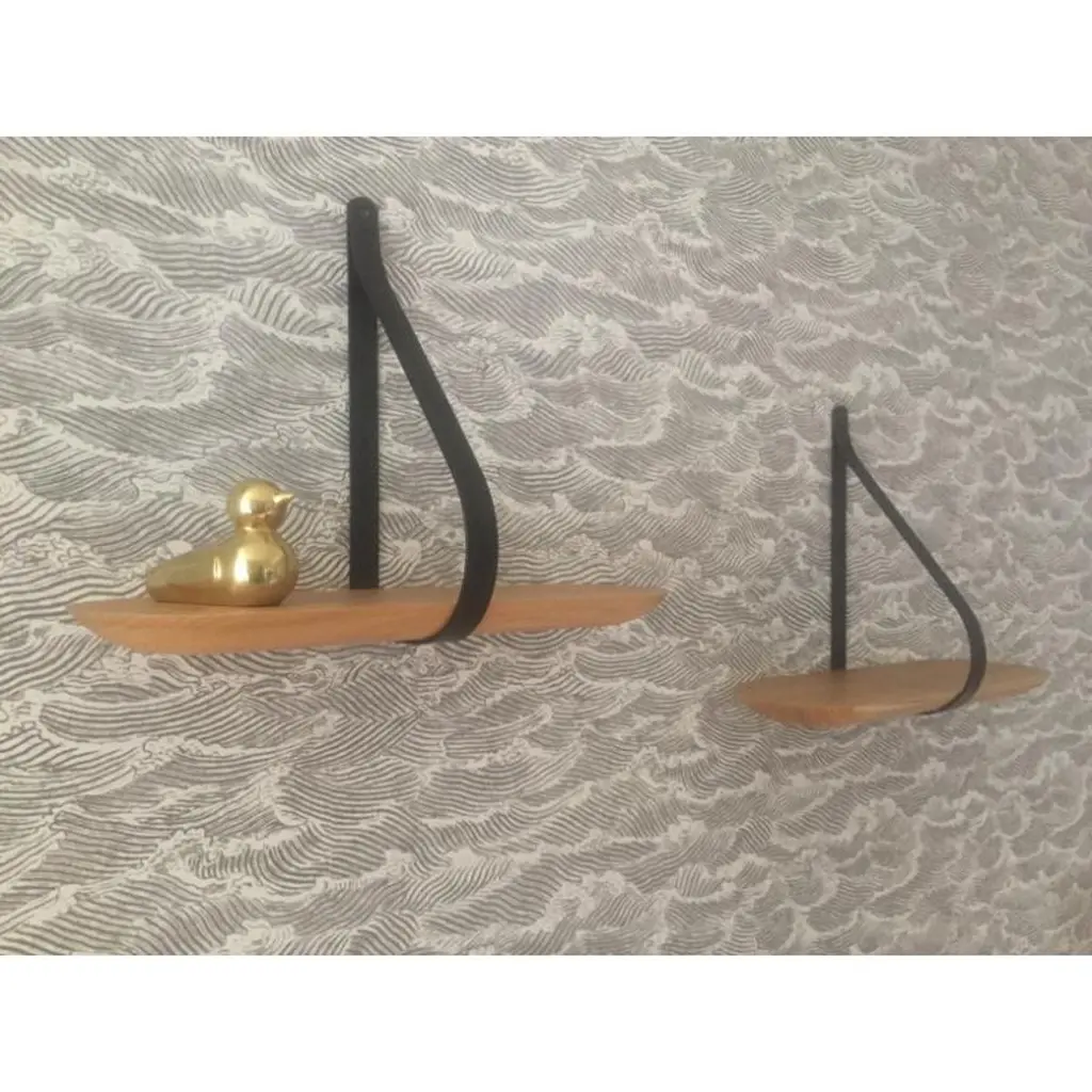 Libra Shelf 60 by Colé Italia with Martinelli/VeneziaDimensions: H.42 D.20 W.55 cmMaterials: Shaped solid oak wall shelf; black lacquered iron stirrupsAlso Available: Libra Shelf 120,A minimalist shape with a strong aesthetic, Libra plays with the concept of balance, displacing the observer. “The metal support wraps the convex base of the wood, deforming and creating a material illusion: at first impression, it resembles a leather band. The image that inspired the project is, in fact, the traditional book-holder leather belt used by our grandparents, before the advent of the folders. Made of solid oak and supported by a wrought iron ribbon. A hidden metal plate welded to the support structure, makes the shelf-stable and durable.Colé is a young Italian design brand, with a high-end production 100% made in Italy. Born from the experience of Matteo De Ponti, architect, who grew up in one of the most outstanding Milanese design families, and the artistic sensibility of Laura Macagno, degree in Economics and passionate of art and design. Our Mission is to create design icons, beautiful and comfortable pieces that can Stand the test of time, furnishing houses of international and sophisticated clients, and realized with craftsmanship, thus unique. “We love objects which own deep roots, excellent quality, and a strong evocative power. Archetypal forms dressed with new beauty without losing their classical composure”.Our expressive research is inspired by the utopian force of Italian eminences grises architects and designers of the ’50s, the Scandinavian design, the Bauhaus, ethnic handcraft and houses of famous writers of the XX century, all different as a style but united by the intense soul of those who worked and lived there.