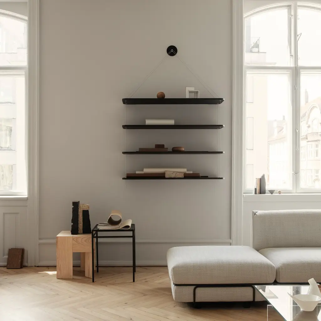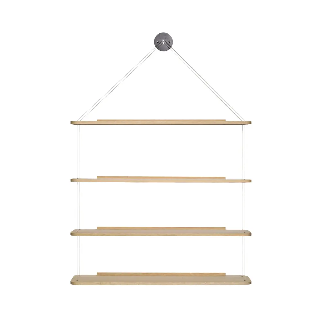 Italian designer brothers Achille and Pier Giacomo Castiglion pared the idea of a wall-hung bookshelf down to a minimalist ideal in Libera Pensile. First unveiled in 1957, it proves its timelessness in this reintroduction by Copenhagen brand Karakter. With shelves hanging from nearly indiscernible knotted cords that are suspended from a single point, the shelves have a look of floating that also makes them discreetly apropos for displaying favorite objets or greenery.
