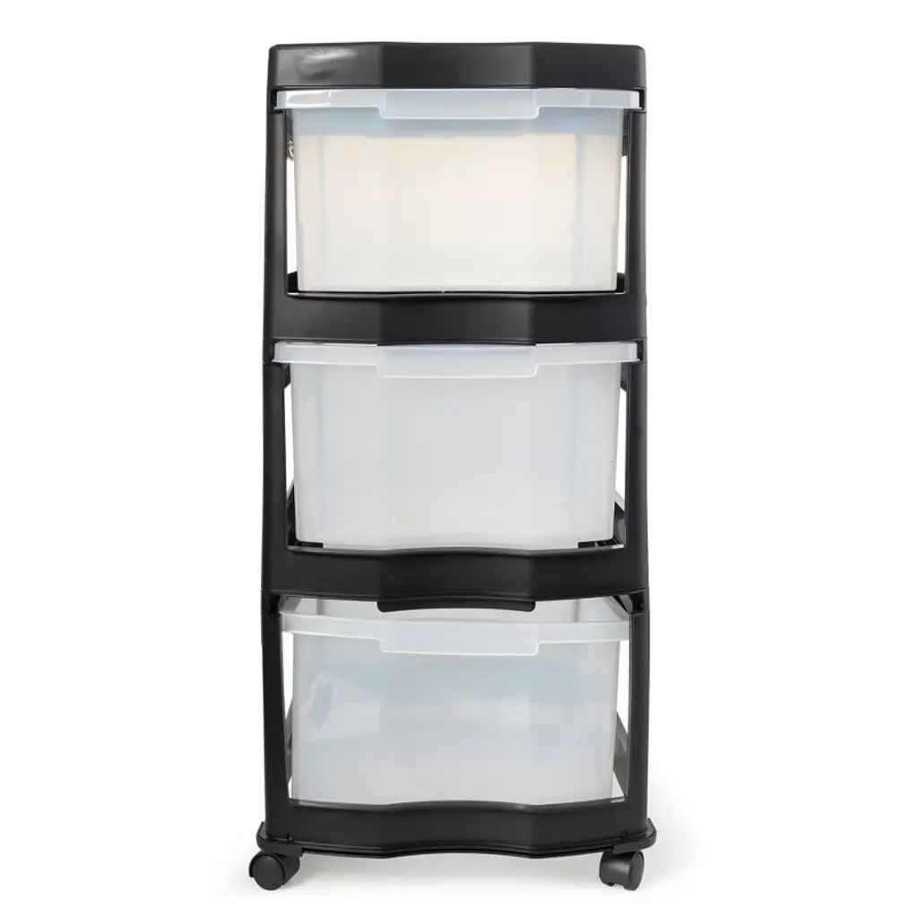 Life Story Classic Black 3 Shelf Standing Plastic Home Storage Organizer And Drawers With Wheels For Closet, Dorm, Or Office