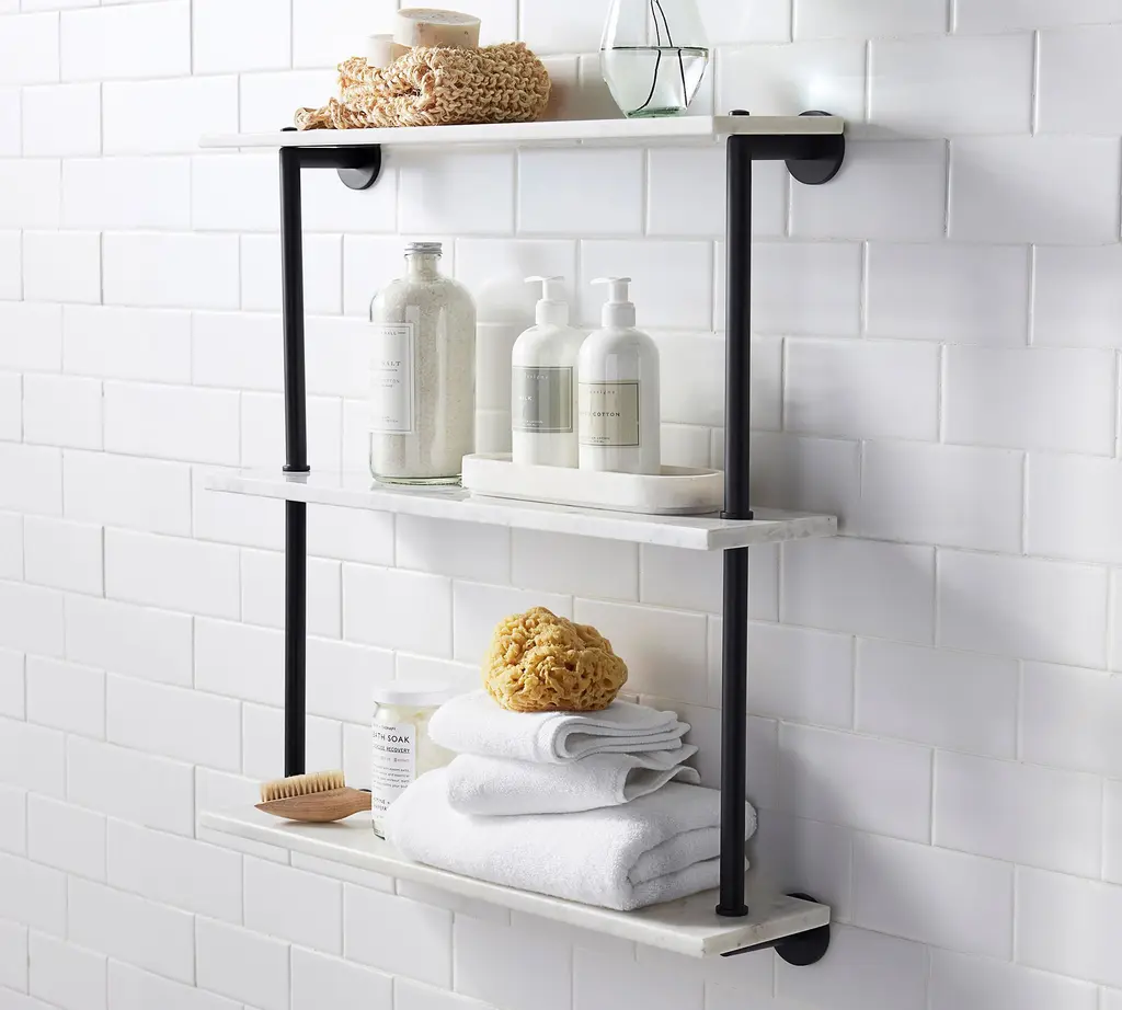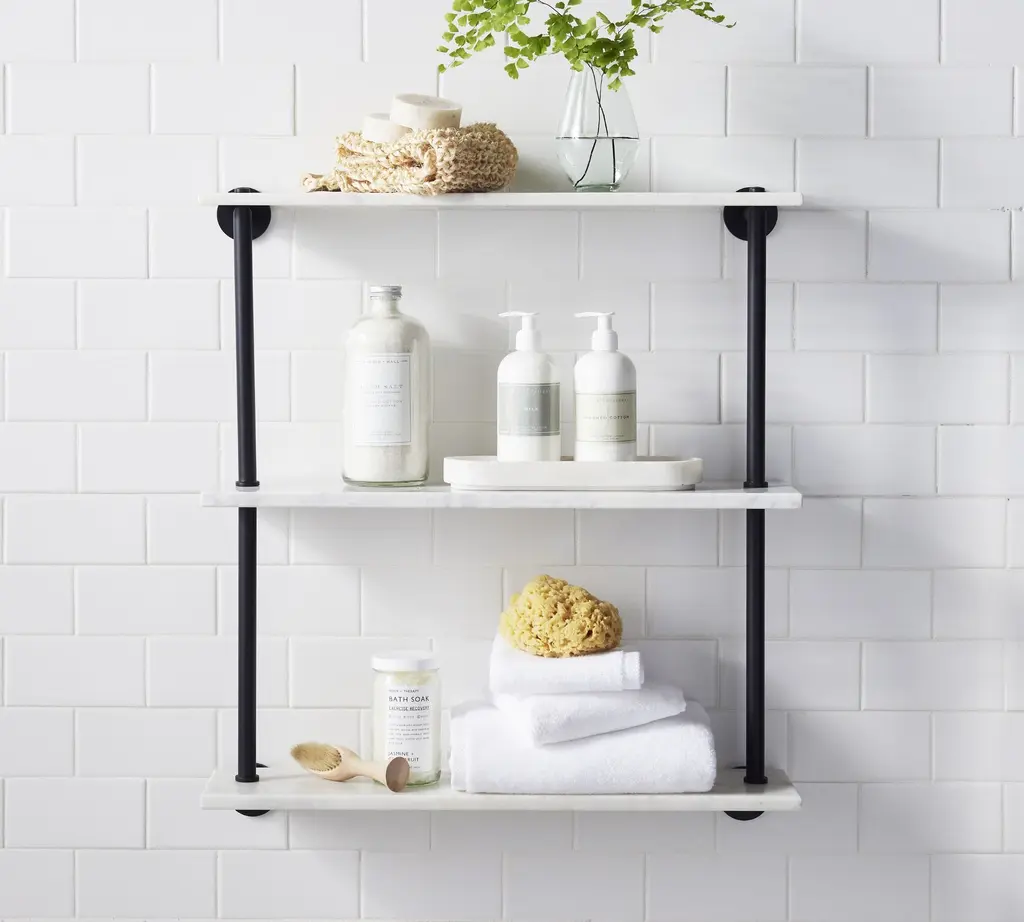 Linden’s mixed materials make it the perfect complement to a refined, modern bath. With three tiers of stone shelves, it offers space for easy-access storage and display of your favorite accessories. But we also just love its clean, simple, luxurious look.