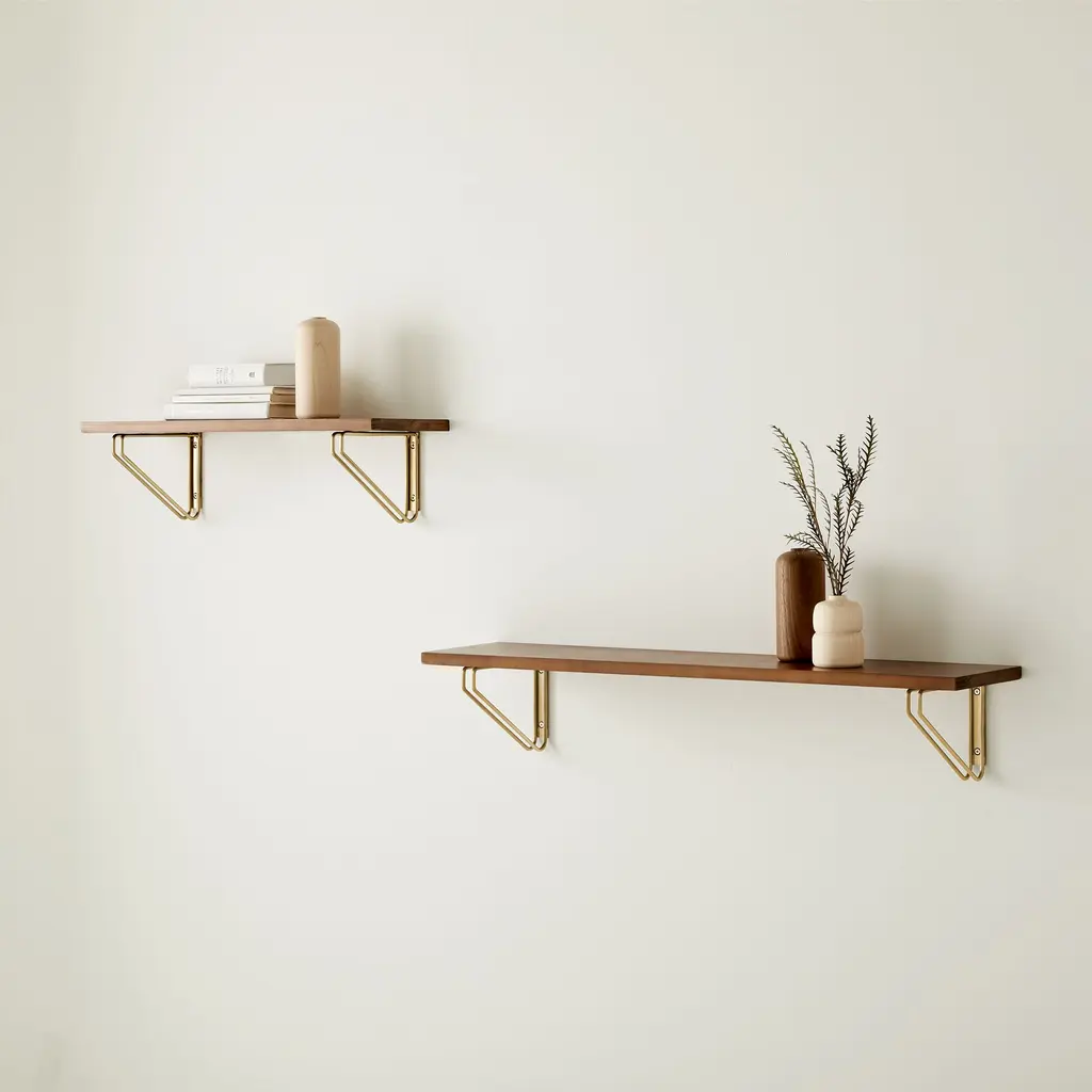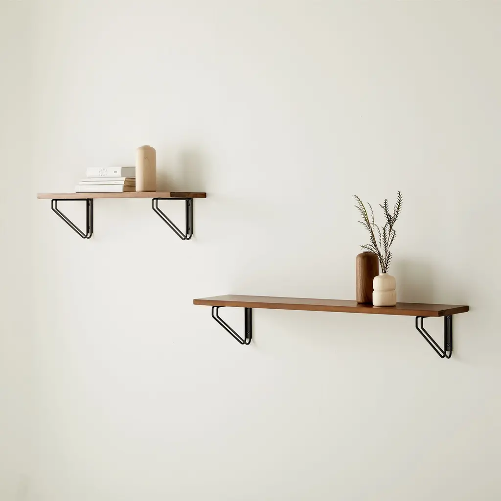 Modern way to showcase books, artwork and more. Clean-lined, floating design in solid wood. Made in a Fair Trade Certified™ factory. Quick and easy to install with included hardware.