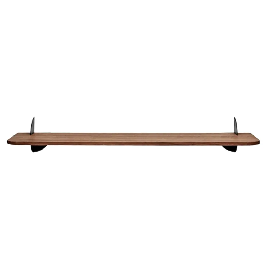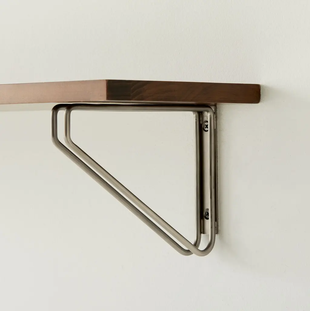 Linear Cool Walnut Wood Wall Shelves With Parallel Brackets