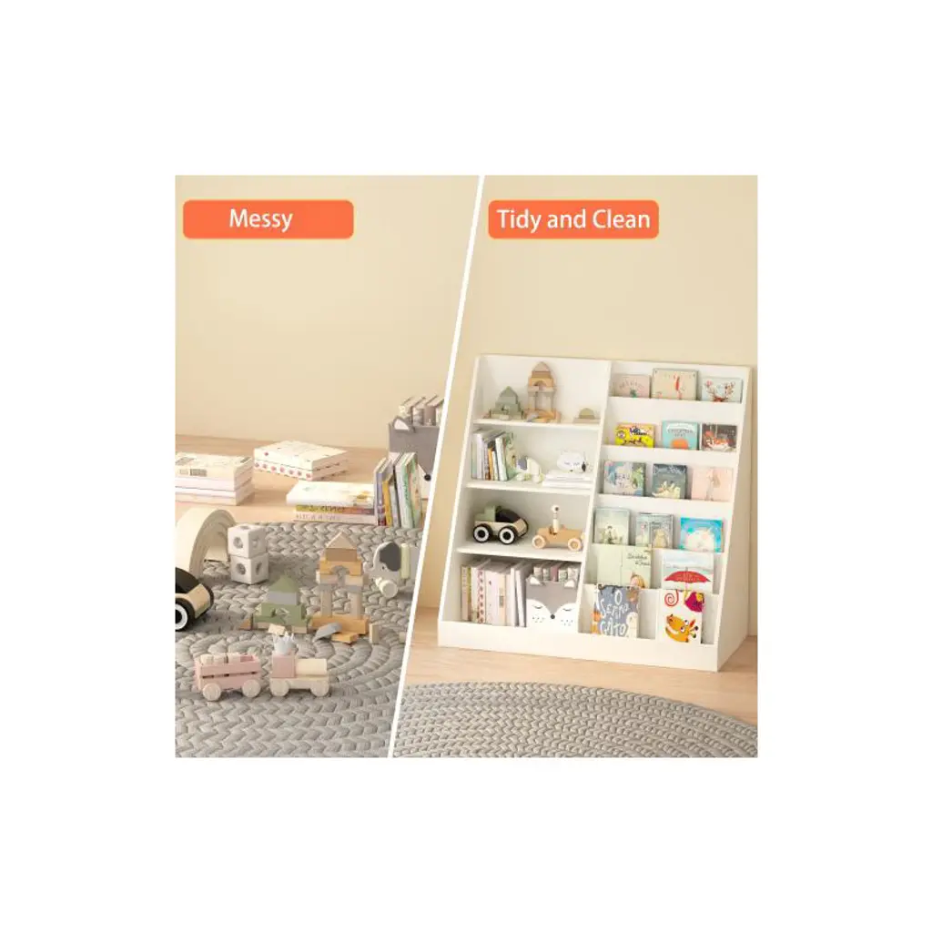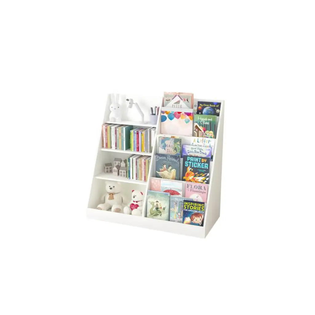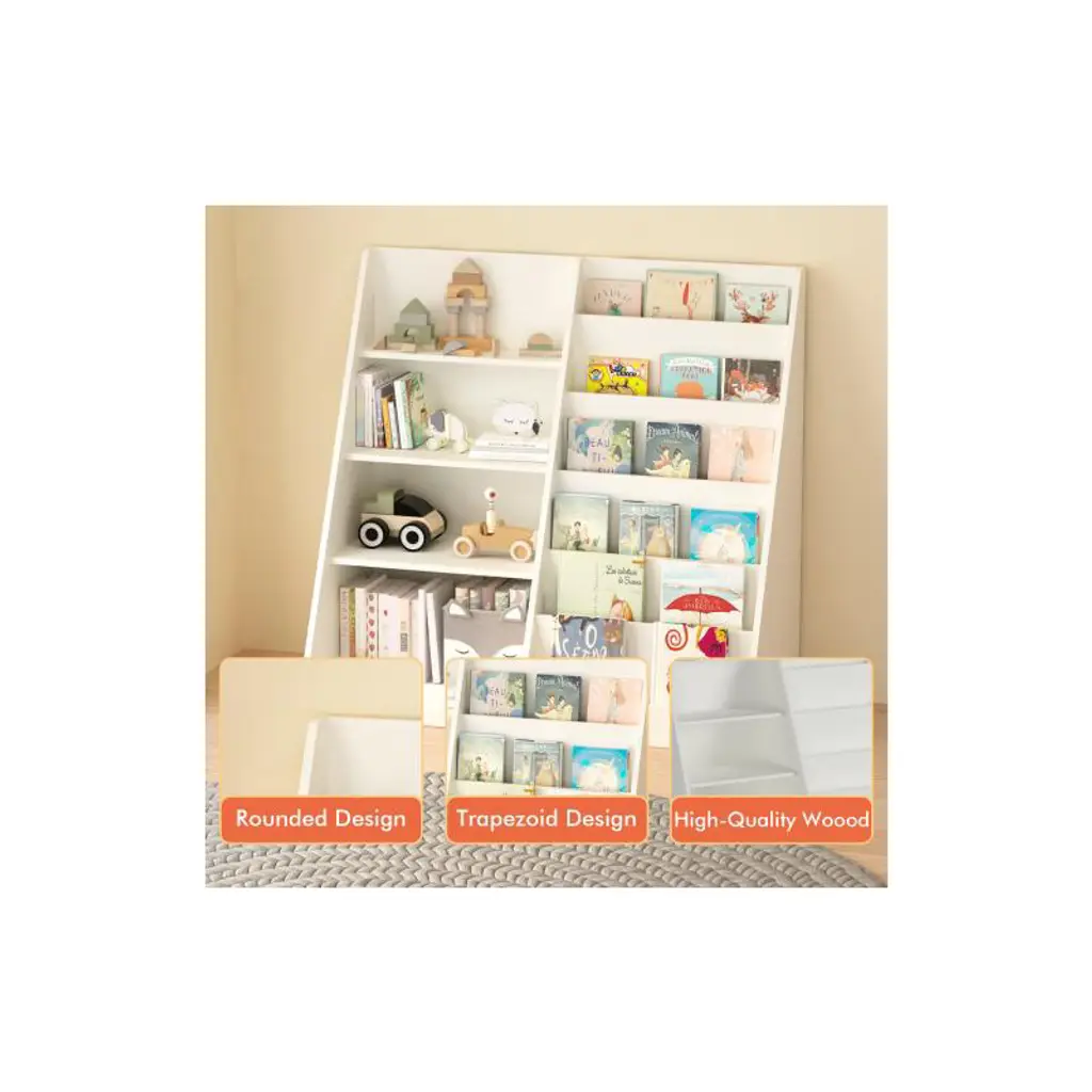 Livareemlen Bookshelf And Toy Storage Organizer, Multifunctional 4 Tier Wooden Book Shelf For Kids, Children, Toddlers (White)