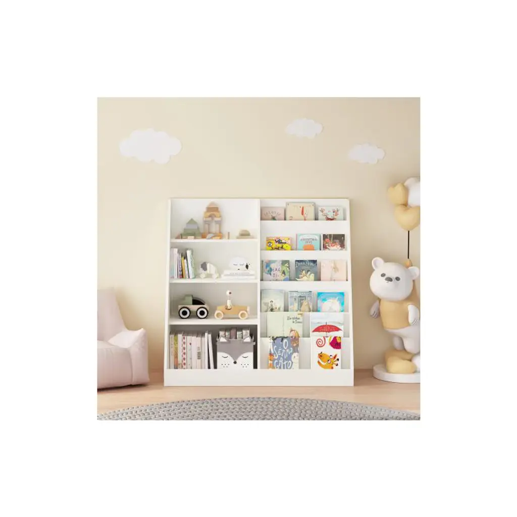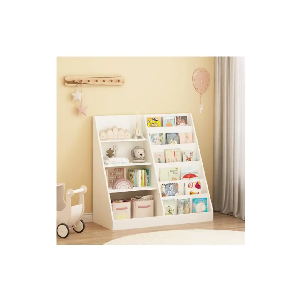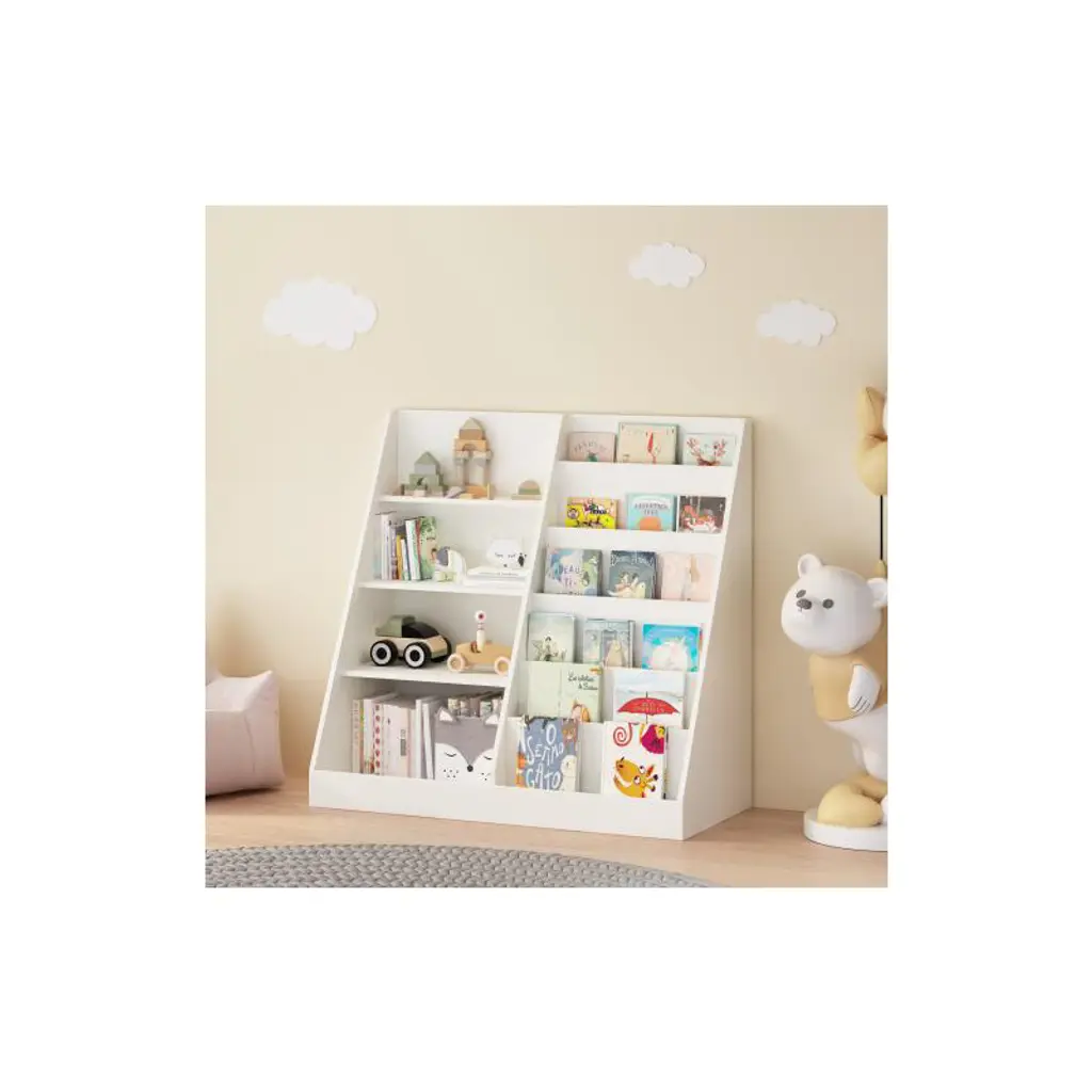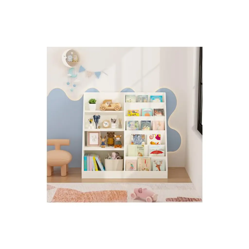 Livareemlen Bookshelf And Toy Storage Organizer, Multifunctional 4 Tier Wooden Book Shelf For Kids, Children, Toddlers (White)